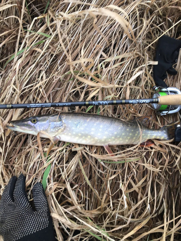 Летит этот воблер очень хорошо и далеко, на моей палке он летел 25-30 метров. Палка у меня тоже от фирмы Akara в моделе Black Hunter в росте 240 см. и тесте 5-18г. и катушка DAIWA EXELER в 2500D размере. На этот комплект ловить на воблера мне крайне удобно. Спиннинг передаёт даже мелкие тычки и все колебания воблера по шнуру. Воблер я всегда использовал на железном щучьем поводке.