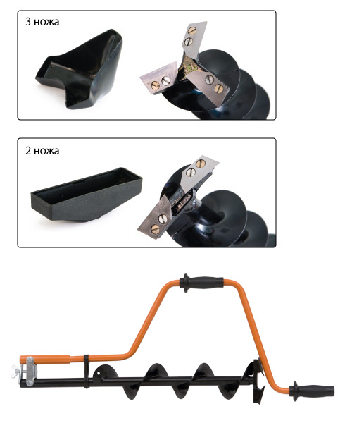 Еще в не столь далекие времена в продаже можно было встретить ледобуры, которые, в зависимости от конструкции режущей плоскости, называли «стаканом», «ложкой», «кольцом» или «чашкой». На сегодня все они уже канули в лету. Пришла эпоха шнековых моделей.