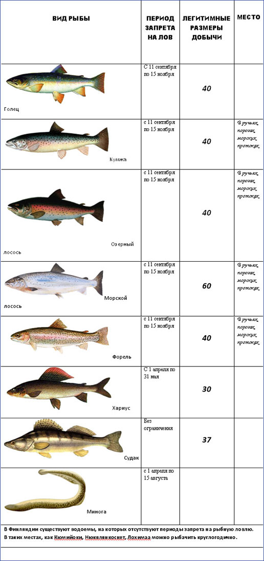 В квитанции указываются правила ловли, временной период рыбалки в Финляндии и способы ловли. Существуют лицензии, которые позволяют их обладателям ловить рыбу в любом месте большого региона. Так, например, заплатив порядка 50 евро, Вы можете рыбачить в любой точке Южной Финляндии. Не возбраняется покупка лицензий одновременно в нескольких регионах.