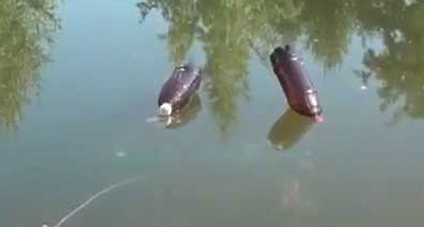 Непосредственно на водоеме бутылки-кружки можно устанавливать и неподвижно, как на течении, так и в стоячей воде в коряжнике, окнах водорослей, там, где проплыв снасти невозможен или грозит частыми зацепами.