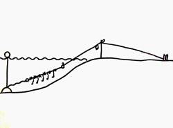 После того, как подлесок будет закреплен и разложен на берегу кольцами (чтобы меньше путались поводки с крючками) на лодке завозится груз, примерно на расстояние 30-40м. Критическое натяжение резины можно определить по ее виду и диаметру. Обычно резина белеет и становится тонкой, как леска. Груз опускается на дно и обозначается буйком, чтобы при обрыве резины можно было его поднять.