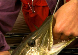 Поводки на живцовой «резинке» ставятся металлические. Если на ловле чехони поводки свободно ходят по леске на вертлюжках, ограниченные резиновыми узелками, то здесь они крепятся глухо, при помощи застежки и вертлюжка. Живец цепляется под спинной плавник или под спинной плавник и губу дополнительным поводком. Насадка его, как на жерлицах, способом «через жабры» не имеет смысла. Здесь потребуется подсечка, или снасть сработает на «самозасек» за счет упругости резины. Иногда, сидя у «резинки» можно совершать плавные потяжки леской для привлечения хищника или перемещать леску за счет натяжения и ослабления резины. Меняя уровень места ловли, можно попасть на уловистую бровку, где любит охотиться хищник.