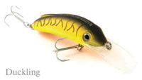 Плавающая модель Duckling (90 мм, 20 г), схожая с Bow 90 F по форме тела, имеет оригинальную лопатку со сверхострым углом атаки, выгнутую с обеих сторон вверх и расположенную практически параллельно телу. В задней части тела – «плавничок», придающий хвостовой части большую вертлявость при проводке. Этот акустический воблер лучше подойдет для «дорожки» (заглубление до 3 м). В зависимости от быстроты проводки сильно трансформируется характер игры приманки, поэтому, меняя скорость лодки, рыболов может добиться поклевки хищника (особенно судака и окуня) в любой стадии активности.