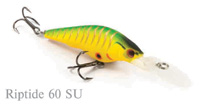 Суспендер Riptide 60 SU (60 мм, 7 г) с высокочастотной игрой зарывается при «дорожечной» проводке до 4,0 м, а если ловить взаброс – до 1,5 м. Этот акустический воблер – признанный лидер по судаку и окуню летом и осенью на Ладоге, некоторые рыболовы даже ставят только его, игнорируя иные модели. Несмотря на свои небольшие размеры, он зачастую соблазняет крупную щуку. Хорошо себя показал и при облове взаброс ям, расположенных ниже перекатов.