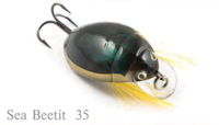 Плавающий воблер-жук Sea Beetit 35 (35 мм, 4 г) тоже предназначен для ловли голавля, а также и других рыб, предпочитающих охотиться на перекатах. Один из действенных способов ловли на него заключается в забросе на струю под противоположный берег, далее – без всякой подмотки катушкой – воблер под действием течения медленно сносит к берегу, с которого был произведен заброс. Тело воблера оснащено двумя натуральными перышками, привлекательно шевелящимися под действием водного потока, и шумовой камерой с шариками. Заглубление при ловле взаброс – до 0,3 м.