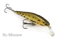 Плавающий акустический Xs-Minnow (100 мм, 16 г) – воблер с размашистой игрой, переваливающийся сбоку набок при проводке. Средний угол атаки и крепление лопатки в ее основании делают его игру довольно резкой. Хорошо зарекомендовал себя при ловле щуки и судака в теплой воде. Используется для ловли взаброс. В теле есть специальная камера с перекатывающимся шариком, который, во-первых, в смещенном к хвосту положении не позволяет захлестываться воблеру за леску при полете, а во-вторых – после приводнения, когда шарик смещается вперед в специальный отсек, Xs-Minnow идет носом вниз, принимая более естественное положение в воде. Ловят на этот воблер и «дорожкой», и троллингом с планерами или даунриггерами. Заглубление при ловле взаброс – до 1,2 м, при «дорожке» и троллинге – 1,5-2,5м.