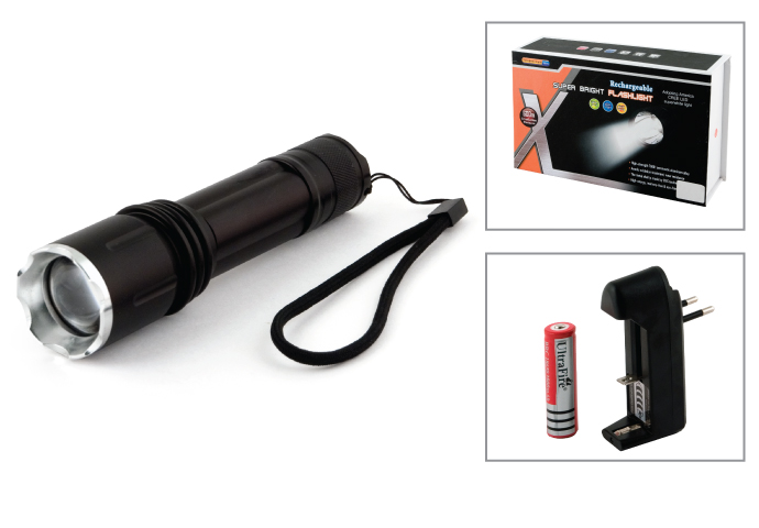 Выполнен из авиационного алюминия. Изменяемый фокус. Мощный диод. В комплекте зарядное устройство и аккумулятор.