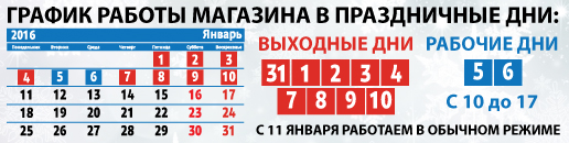 С 11.01.2016 интернет-магазин работает в обычном режиме.