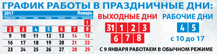 Пожалуйста, учитывайте, что все заказы, полученные с 28.12.2016, будут отправлены после новогодних праздников!