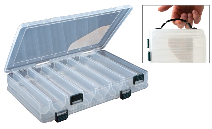 Двухсторонняя коробка от Akara, предназначена для хранения различных видов приманок. Благодаря продолговатой форме секций идеально подойдет для хранения воблеров. Коробка выполнена из прозрачного пластика и оборудована гибкой ручкой для переноски.