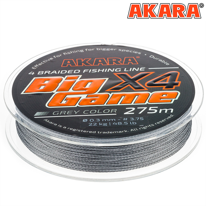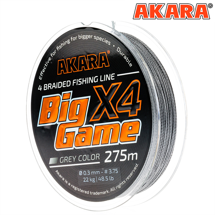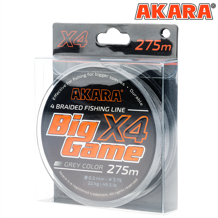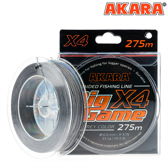 Akara Big Game X-4 275м – универсальный четырехжильный рыболовный шнур, изготовлен из качественного современного волокна японского производства, имеет высокую плотность плетения и не боится морской воды. Шнур отличается высокой прочностью и надежностью, имеет круглую форму, абразивоустойчив и подойдет для морской рыбалки в отвес на мультипликаторные катушки, для ловли трофейной рыбы, ловли сома, а также для ловли на джерк. Каждые десять метров шнура окрашены в новый цвет, что позволяет контролировать расстояние до приманки.