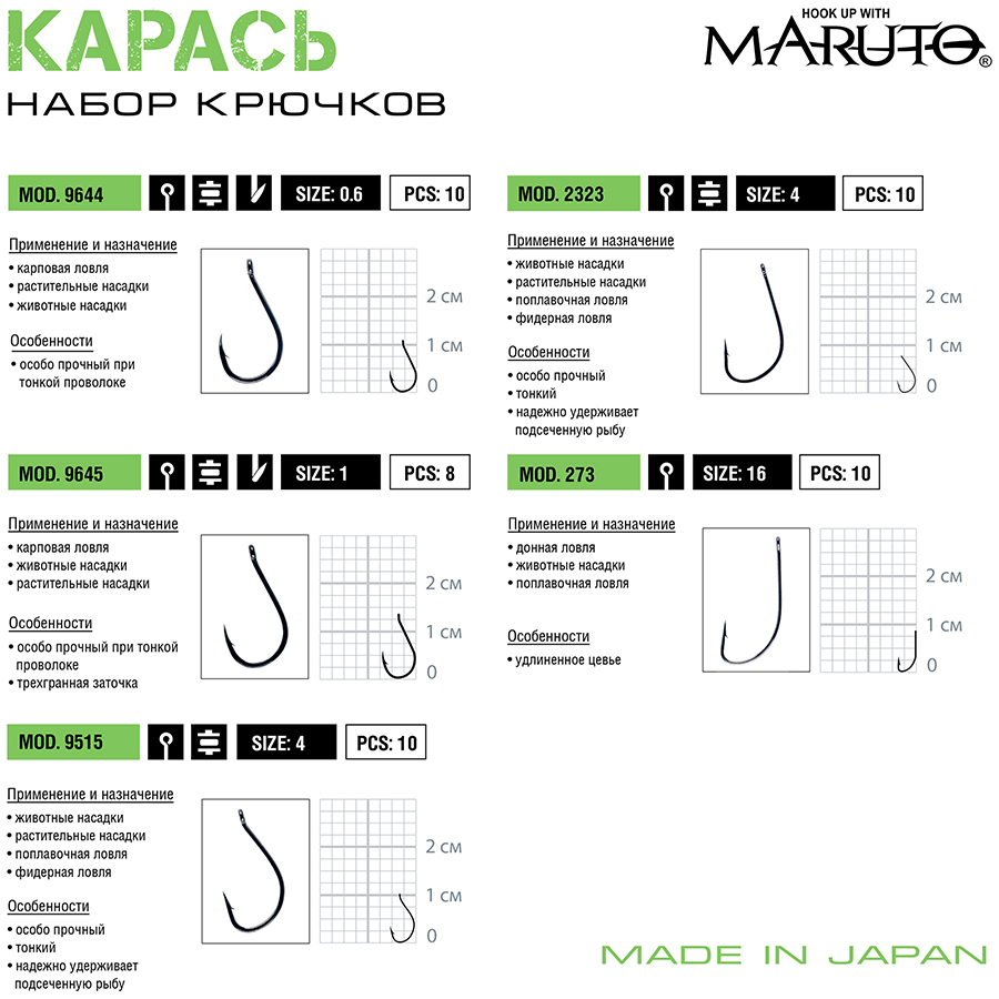 О надежности и высочайшем исполнении японских рыболовных крючков мы все хорошо знаем. Имена крупнейших японских компаний, производящих эти крючки, у всех на слуху –и у рыболовов-спортсменов, и у любителей. Одно из ведущих мест занимает компания MARUTO.