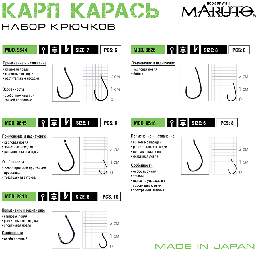 О надежности и высочайшем исполнении японских рыболовных крючков мы все хорошо знаем. Имена крупнейших японских компаний, производящих эти крючки, у всех на слуху –и у рыболовов-спортсменов, и у любителей. Одно из ведущих мест занимает компания MARUTO.