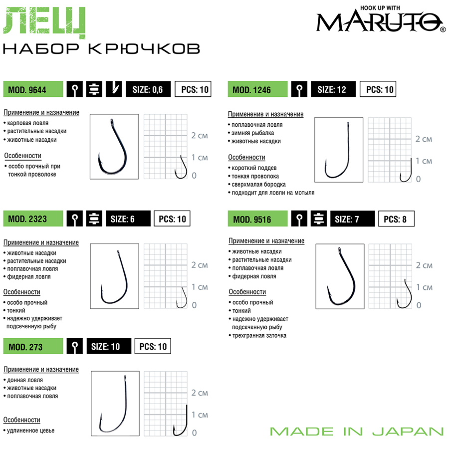 О надежности и высочайшем исполнении японских рыболовных крючков мы все хорошо знаем. Имена крупнейших японских компаний, производящих эти крючки, у всех на слуху –и у рыболовов-спортсменов, и у любителей. Одно из ведущих мест занимает компания MARUTO.