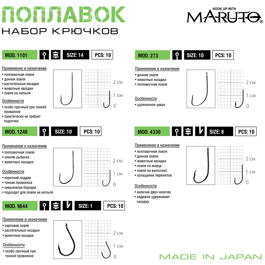 О надежности и высочайшем исполнении японских рыболовных крючков мы все хорошо знаем. Имена крупнейших японских компаний, производящих эти крючки, у всех на слуху –и у рыболовов-спортсменов, и у любителей. Одно из ведущих мест занимает компания MARUTO.