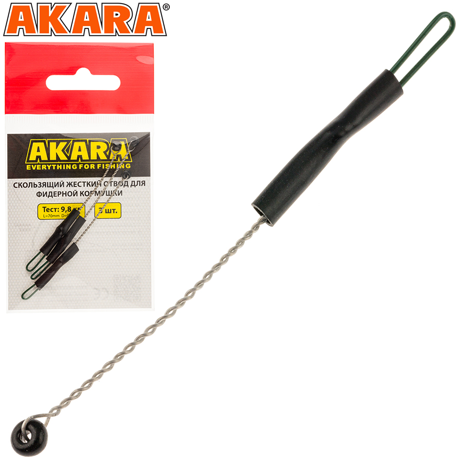 Металлический отвод Akara жесткий скользящий для крепления фидерной кормушки, позволяет мгновенно менять размер кормушки. Не имеет деталей, за которые может захлестнуться поводок. В упаковке 3 штуки. Используется в комплекте с отводом Akara Feeder Gum для фидерного монтажа In-Line.