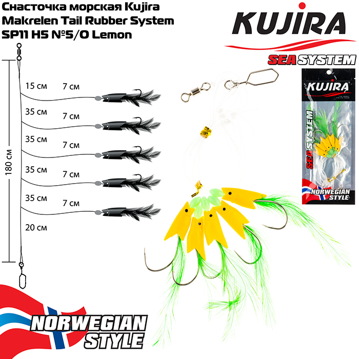 Снасточка морская Kujira Makrelen Tail Rubber System SP11 H5 №5/0 Lemon |