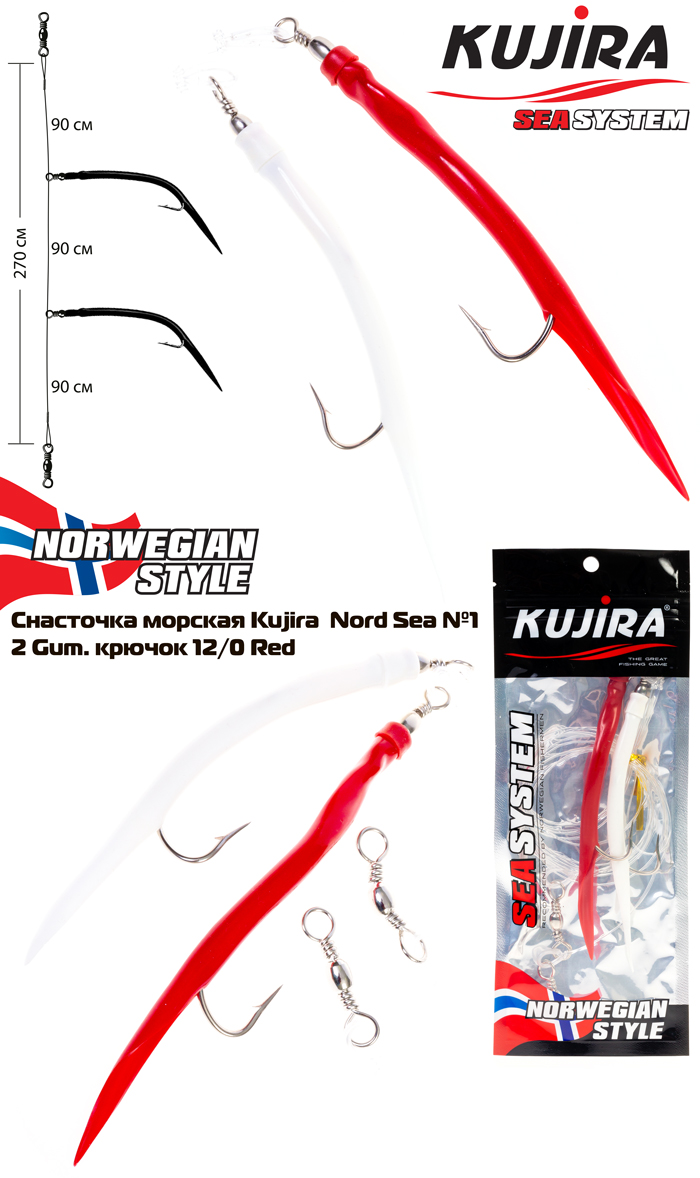 Снасточка морская Kujira Nord Sea №1 (2 Gum 8/0 Red-White) |