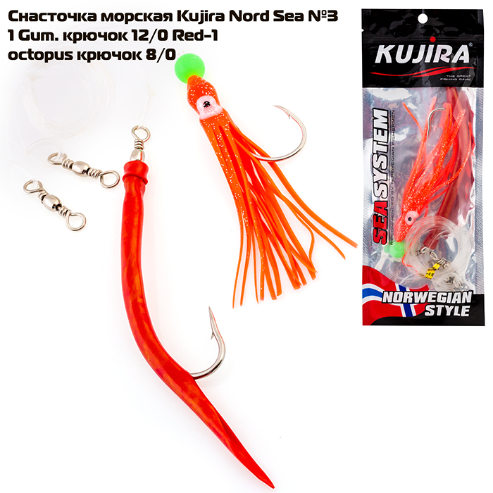 Снасточка морская Kujira Nord Sea №3 (1Gum.12/0 Red-1 octopus 8/0) |