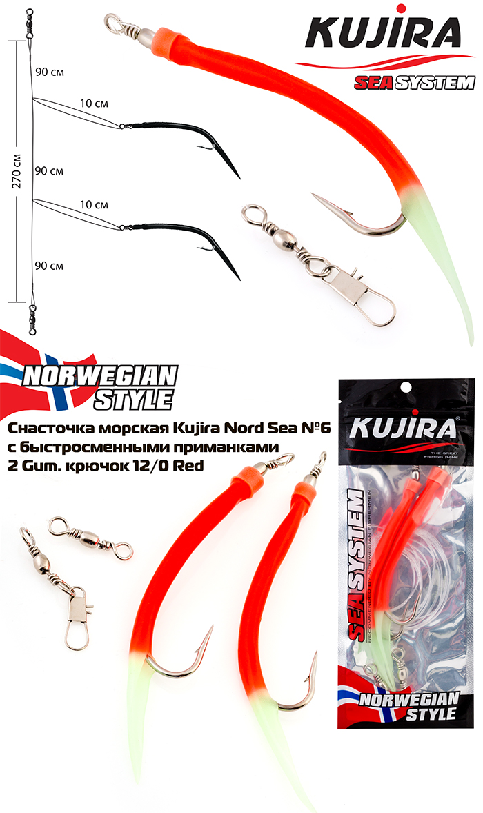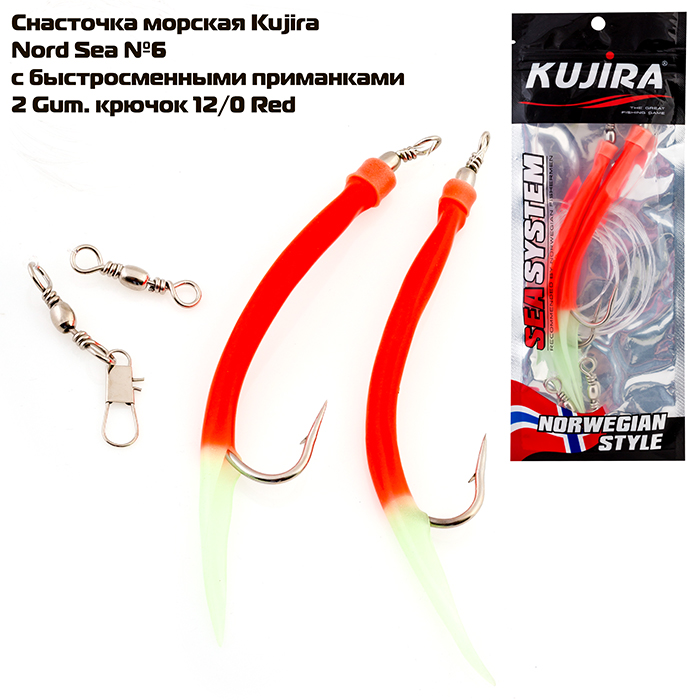 Снасточка морская Kujira Nord Sea №6 с быстросменными приманками (2 Gum.12/0 Red) |