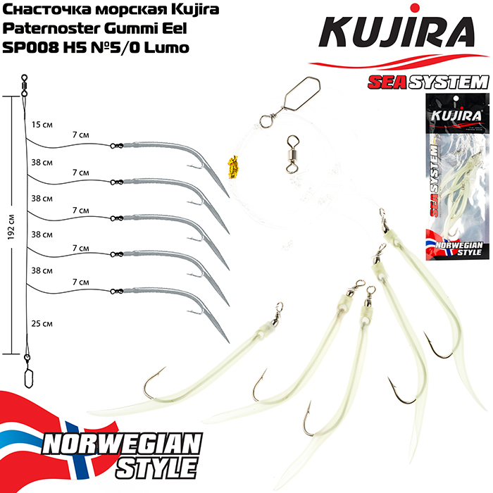 Снасточка морская Kujira Paternoster Gummi Eel SP008 H5 №5/0 Lumo |