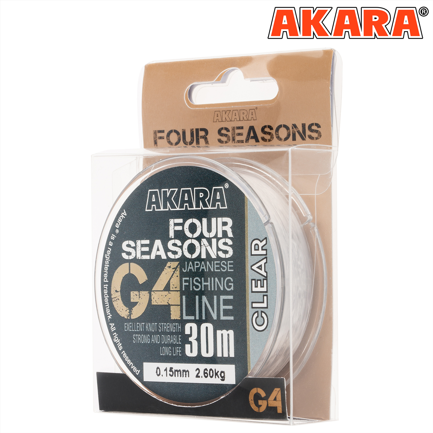 Всесезонная японская леска Akara G4 Four Seasons с увеличенными разрывными характеристиками. Обладает низкой памятью и повышенной износостойкостью. Не впитывает воду и невидима в воде. Рекомендована для всех видов рыбной ловли. Прозрачная.