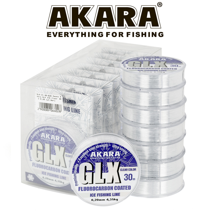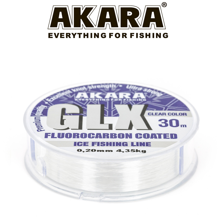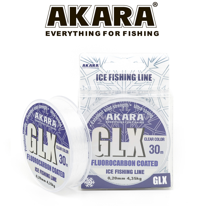 Рыболовная леска Akara GLX - относится к категории гибридных рыболовных лесок, она изготовлена из высококачественного полимера и имеет флюорокарбоновое покрытие. Благодаря этому леска имеет высокую прочность, практически не растягивается, не намокает, обладает высокой абразивостойкостью и может быть использована в тяжелых условиях лова. При ловле зимой леска не обмерзает и не истирается об острый край лунки. При использовании поводков для донной ловли, она так же выдерживает ракушечник и каменистое дно. Благодаря тому, что флюорокарбон практически невидим в воде, леска с покрытием из этого материала тоже малозаметна, что дает возможность поймать любую, даже самую осторожную рыбу. При подборе лески надо учитывать, что данная леска тонущая.