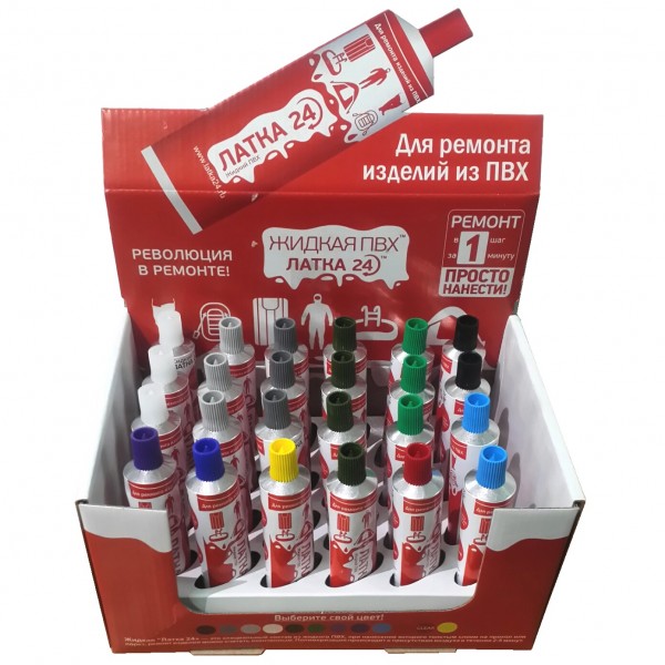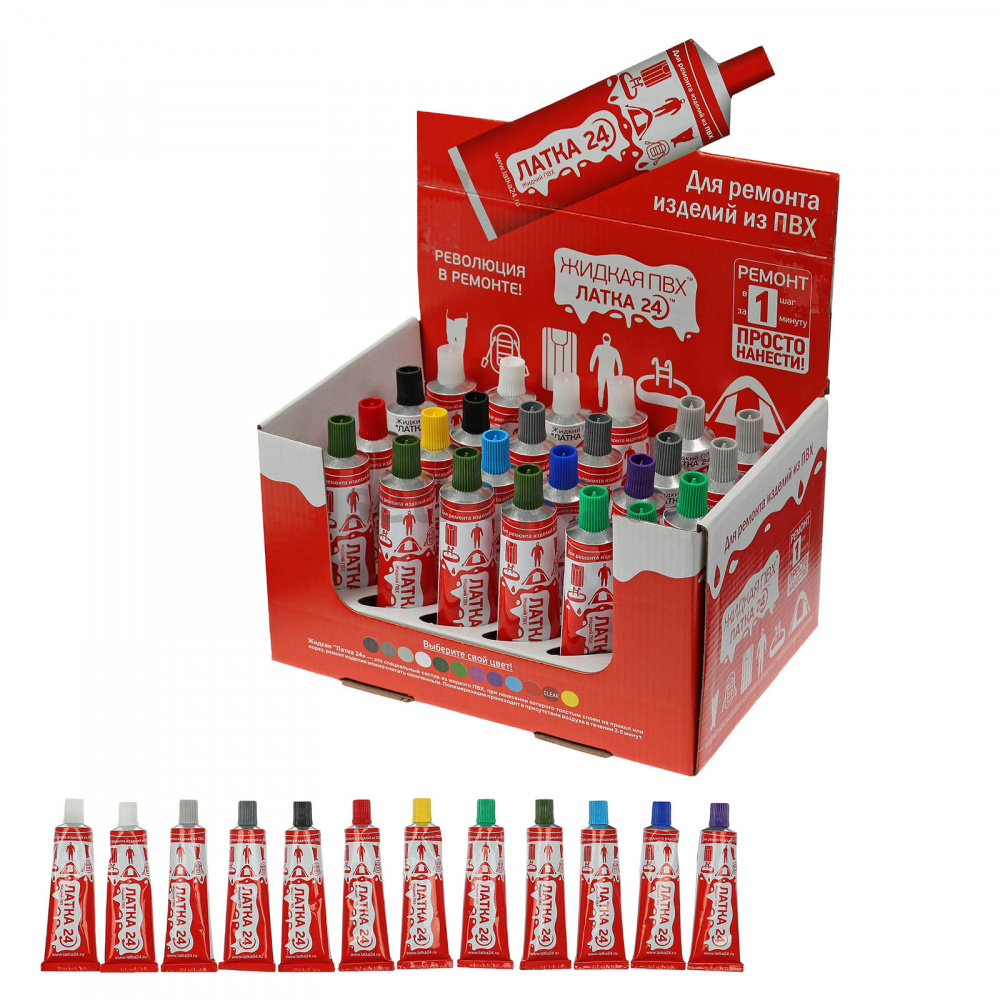 Клей Жидкая ЛАТКА 24 для ремонта любых изделий из ПВХ - матрасы, лодки, катамараны. Достаточно нанести несколько капель на прокол или порез. Возьмите с собой в горы, на море, на реку, в поход Жидкую ЛАТКУ 24! УКАЗАНИЯ ПО ПРИМЕНЕНИЮ: Ремонтируемая поверхность должна быть сухой и чистой. При проколе изделия или порезе до 3 см нанесите одну или несколько капель состава Жидкой Латки 24 на место прокола или пореза. Для достижения наилучшего результата повторно нанести слой состава через несколько минут. Если повреждение значительно и имеет форму разрыва или пореза более 3 см, то следует использовать специальную кордовую ткань, при её отсутствии - сшить нитями, затем обезжирить и нанести состав на корд или на нити. При ремонте изделий - обезжиривание ремонтируемой поверхности ОБЯЗАТЕЛЬНО! Использовать через 24 часа. Не подходит для ремонта изделий из резины!
