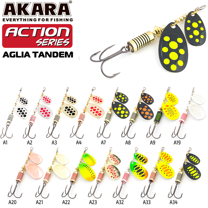 Aglia - классическая блесна от Akara. Универсальная вертушка для ловли на любом типе водоемов. Благодаря большому углу атаки лепестка есть возможность проводки на минимальных скоростях, а при ловли на струе держать блесну без подмотки, давая ей плавно съезжать перпендикулярно течению.