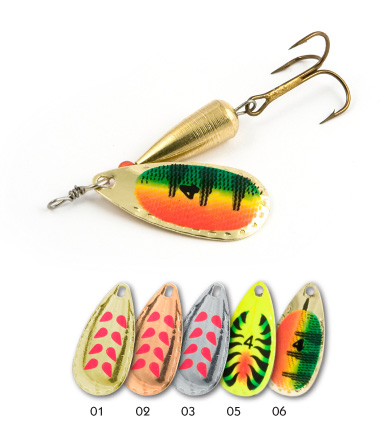 Bullet - одна из самых эффективных вертушек при ловле на небольшом течении и средних глубинах. Уникальная форма лепестка с рифленными краями и сердечник в виде пули позволяют блесне работать на падении и дают рыболову возможность ловить ступенчатой проводкой, которая наиболее эффективна при ловле щуки, жереха и судака.