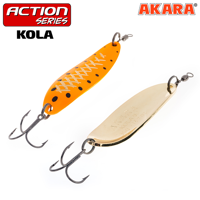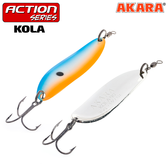 Kola - характерная форма приманки позволяет делать дальний заброс и облавливать самые отдаленные участки, а широкий диапазон расцветок ловить как по теплой, так и по холодной воде с различной степенью освещенности. Большие веса хорошо пробивают струю. Несмотря на то, что это речная блесна, она отлично зарекомендовала себя при ловли на стоячей воде по дальним бровкам. Семга, жерех, щука и другие хищники прекрасно ловятся на эту блесну.
