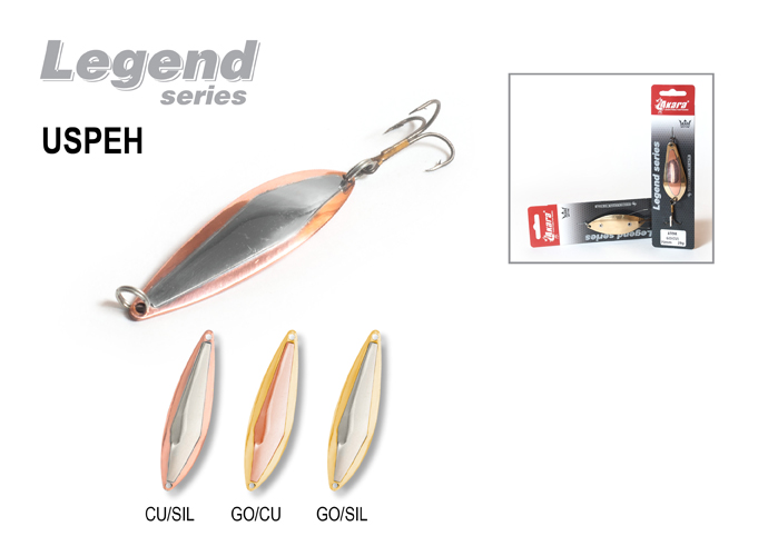 Блесна колебалка Akara Legend Uspeh со вставкой - прогонистая блесна для ловли как по теплой так и по холодной воде. Используется как для ловли в заброс так и для отвесного блеснения. Благодаря своим хорошим аэродинамическим характеристикам, можно выполнить дальний заброс. Основные объекты лова окунь, щука, судак, а так же кумжа, голец, палия, жерех, голавль, язъ. Оснащена вставкой, которая дополнительно провоцирует хищника на атаку.