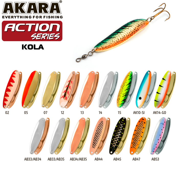 Kola - характерная форма приманки позволяет делать дальний заброс и облавливать самые отдаленные участки, а широкий диапазон расцветок ловить как по теплой, так и по холодной воде с различной степенью освещенности. Большие веса хорошо пробивают струю. Несмотря на то, что это речная блесна, она отлично зарекомендовала себя при ловли на стоячей воде по дальним бровкам. Семга, жерех, щука и другие хищники прекрасно ловятся на эту блесну.