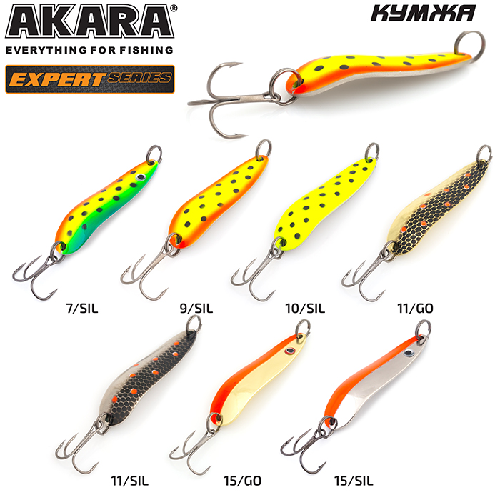 Akara представляет серию блесен Expert. В коллекцию вошли проверенные уловистые блесна. Оснащены крючками Mustad. Произведены в Санкт-Петербурге.