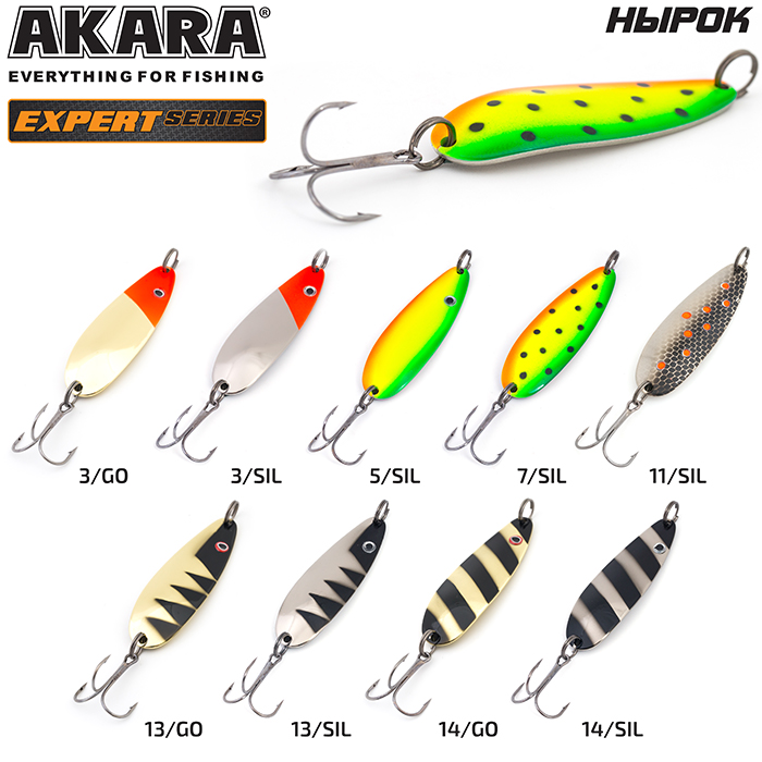 Akara представляет серию блесен Expert. В коллекцию вошли проверенные уловистые блесна. Оснащены крючками Mustad. Произведены в Санкт-Петербурге.