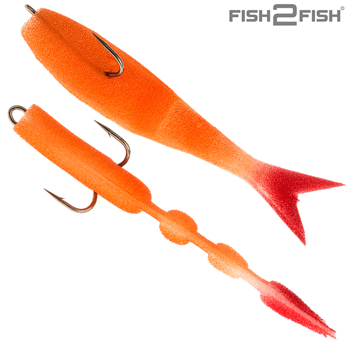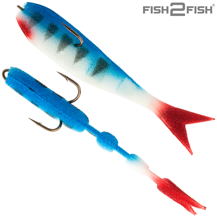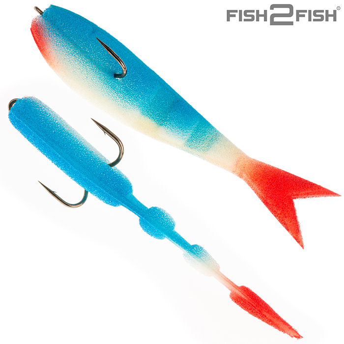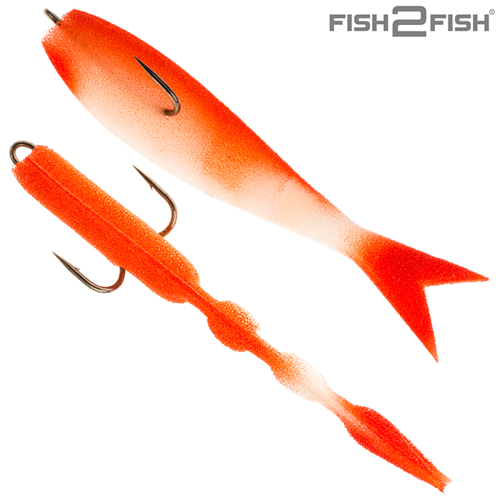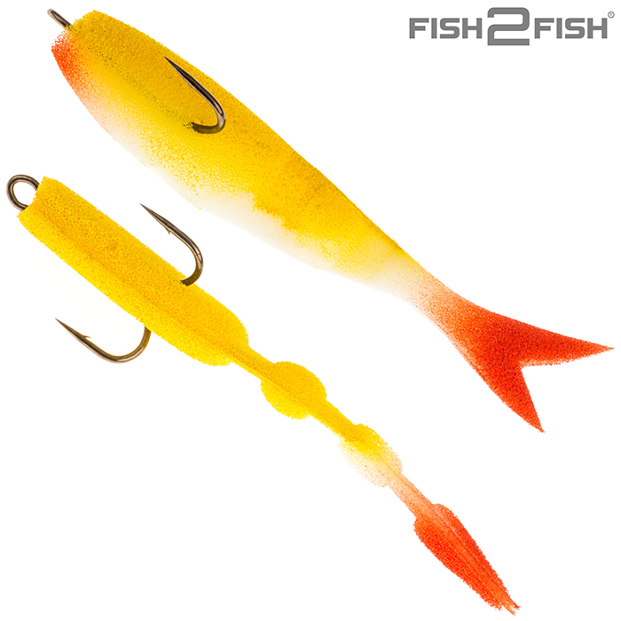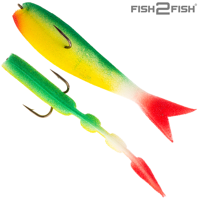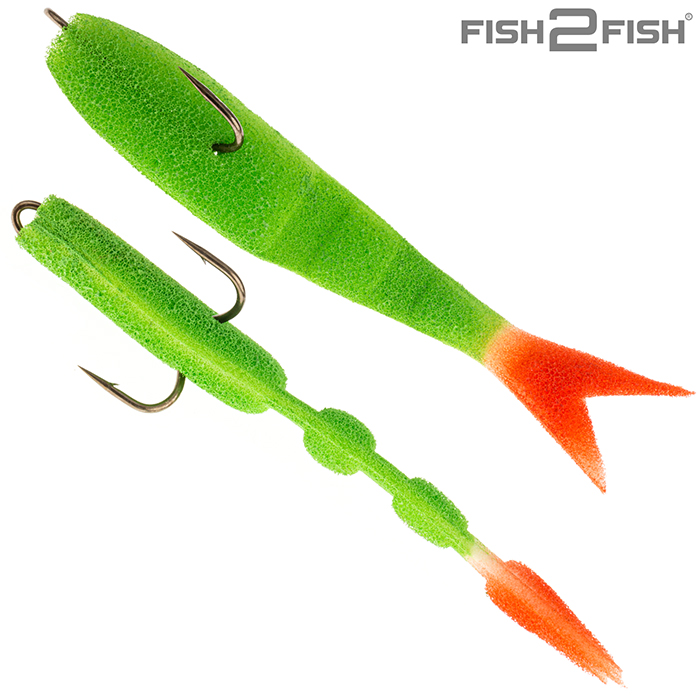 Поролоновая рыбка Fish2Fish - одна из самых простых, но, тем не менее, уловистых рыболовных приманок. Она прекрасно подходит для ловли такой хищной рыбы как судак и щука. Благодаря свойству материала, из которого она сделана, в воде приманка занимает вертикальное положение и за счет этого, очень похожа на кормящеюся рыбку. Как ясно из названия эта приманка выполнена из поролона. Он имеет пористую структуру и в сухом состоянии в порах содержится воздух, при попадании в воду, она постепенно проникает в поры. Происходит это достаточно долго, поэтому приманка занимает на дне вертикальное положение, что является отличительной особенностью поролоновой рыбки, от других приманок. Многие хищники, предпочитают охотится около дна. Поэтому хороший улов можно обеспечить себе, рыбача джигом. Работает весь спиннинговый сезон. Используется для ловли всех хищных рыб без исключения.