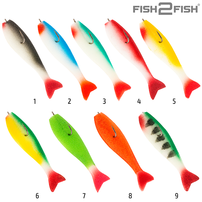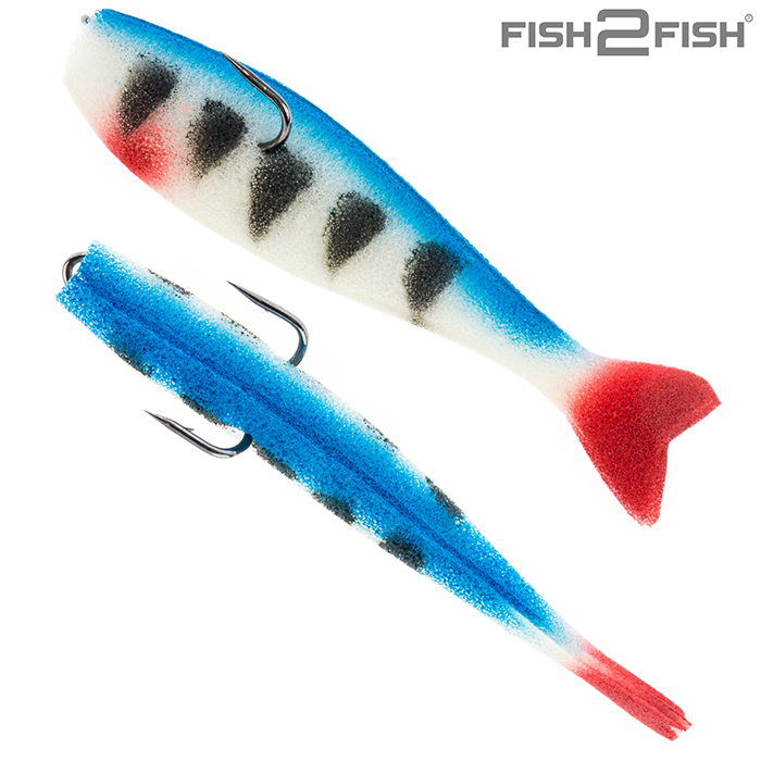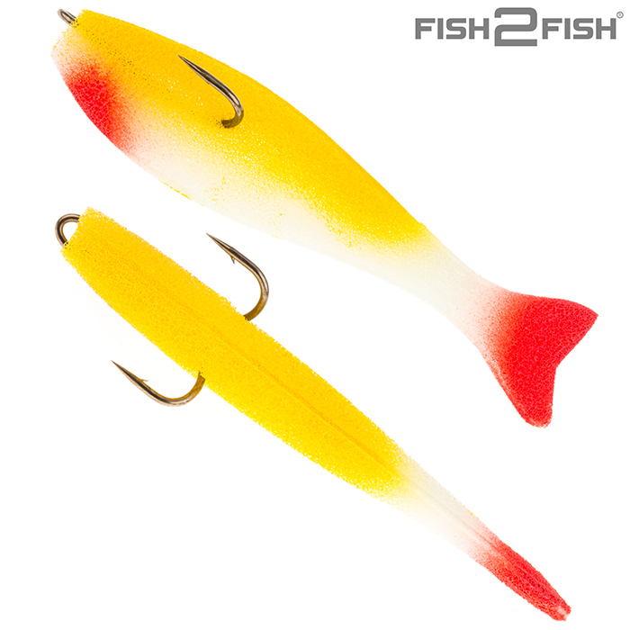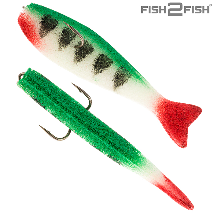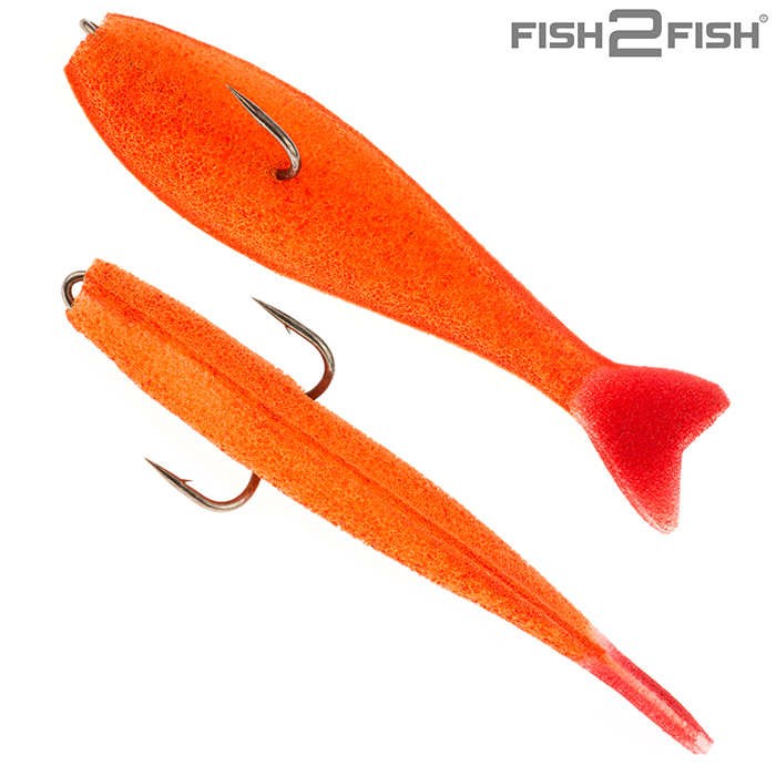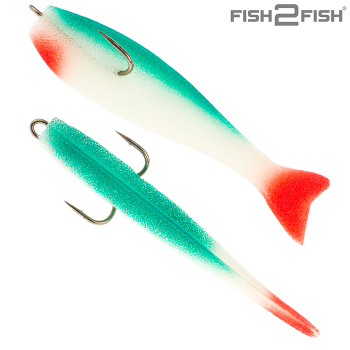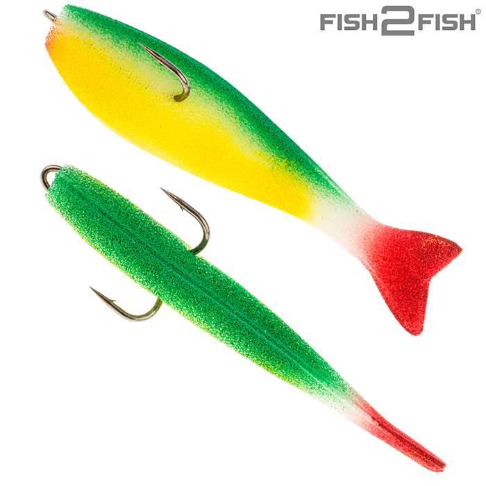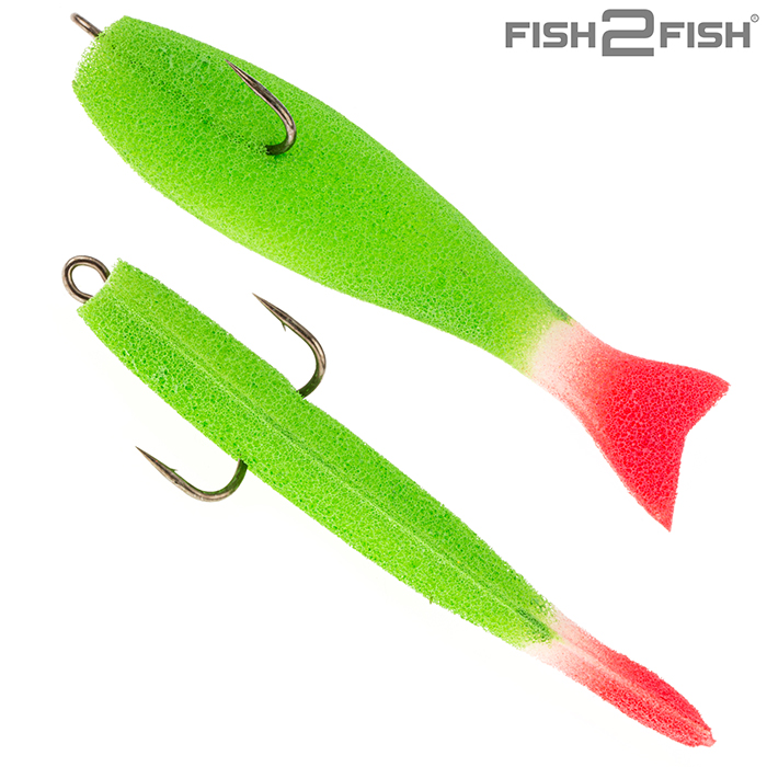 Поролоновая рыбка Fish2Fish - одна из самых простых, но, тем не менее, уловистых рыболовных приманок. Она прекрасно подходит для ловли такой хищной рыбы как судак и щука. Благодаря свойству материала, из которого она сделана, в воде приманка занимает вертикальное положение и за счет этого, очень похожа на кормящеюся рыбку. Как ясно из названия эта приманка выполнена из поролона. Он имеет пористую структуру и в сухом состоянии в порах содержится воздух, при попадании в воду, она постепенно проникает в поры. Происходит это достаточно долго, поэтому приманка занимает на дне вертикальное положение, что является отличительной особенностью поролоновой рыбки, от других приманок. Многие хищники, предпочитают охотится около дна. Поэтому хороший улов можно обеспечить себе, рыбача джигом. Работает весь спиннинговый сезон. Используется для ловли всех хищных рыб без исключения.