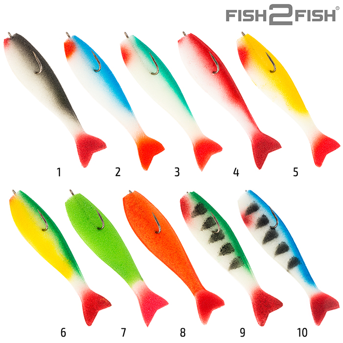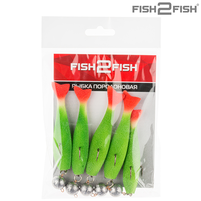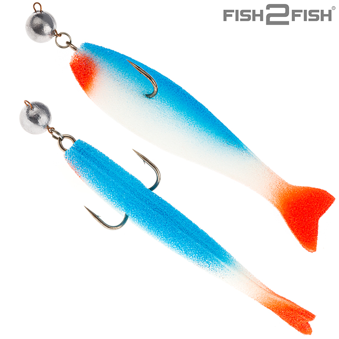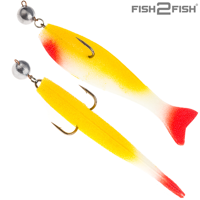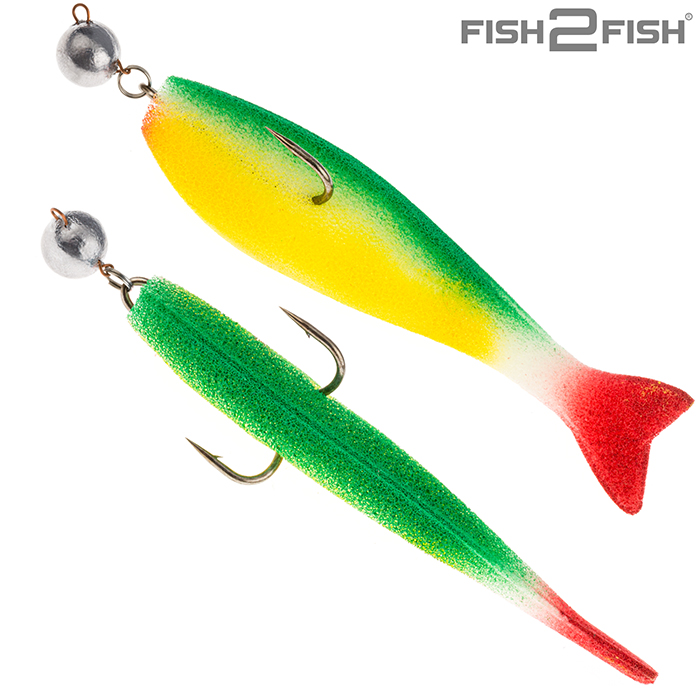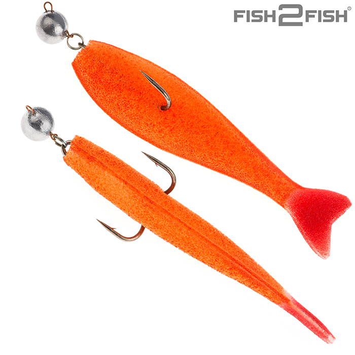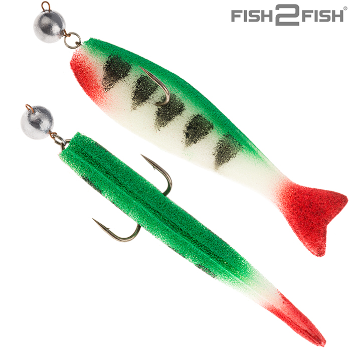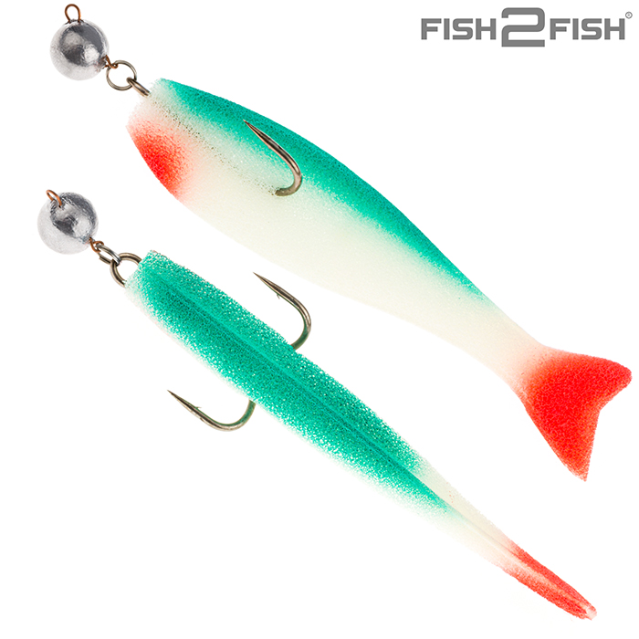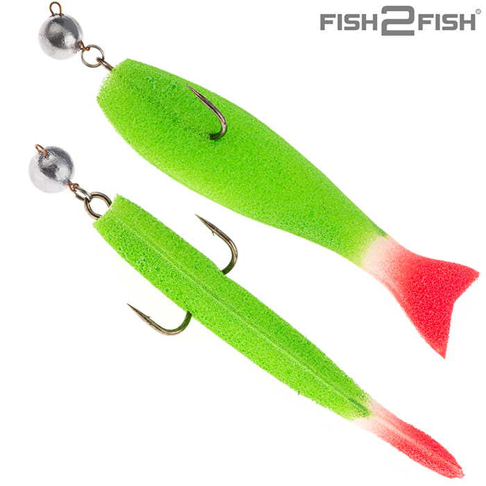 Поролоновая рыбка Fish2Fish - одна из самых простых, но, тем не менее, уловистых рыболовных приманок. Она прекрасно подходит для ловли такой хищной рыбы как судак и щука. Благодаря свойству материала, из которого она сделана, в воде приманка занимает вертикальное положение и за счет этого, очень похожа на кормящеюся рыбку. Как ясно из названия эта приманка выполнена из поролона. Он имеет пористую структуру и в сухом состоянии в порах содержится воздух, при попадании в воду, она постепенно проникает в поры. Происходит это достаточно долго, поэтому приманка занимает на дне вертикальное положение, что является отличительной особенностью поролоновой рыбки, от других приманок. Многие хищники, предпочитают охотится около дна. Поэтому хороший улов можно обеспечить себе, рыбача джигом. Работает весь спиннинговый сезон. Используется для ловли всех хищных рыб без исключения.