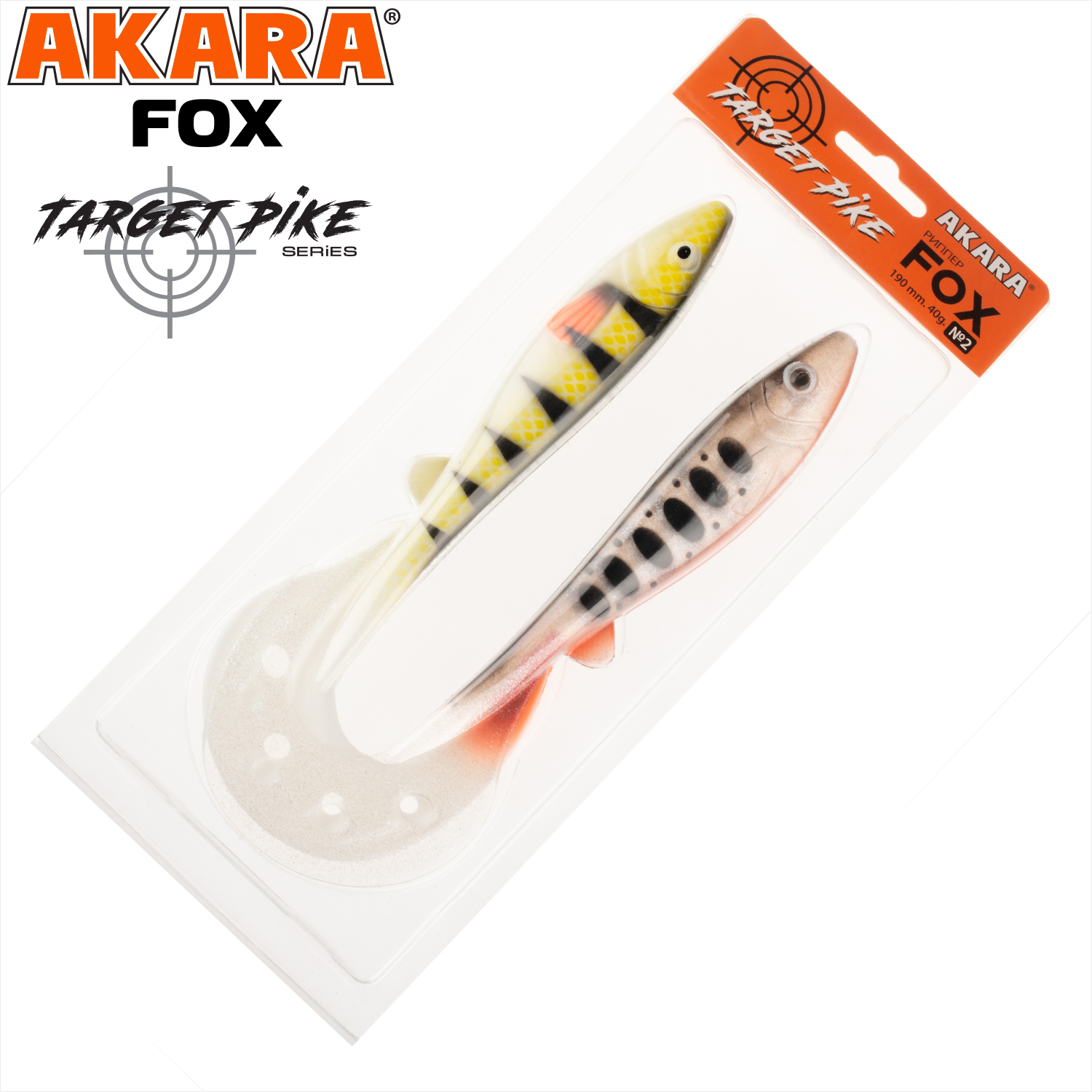 Akara Fox Target Pike — крупная силиконовая приманка, ориентированная на трофейную добычу, такую как крупный судак и щука. Ее размеры составляют 190 мм в длину и 40 граммов веса, что способствует выполнению дальних забросов. Приманки предлагаются набором по две штуки, доступные в трех наиболее востребованных цветах. Обратите внимание, что применение такой приманки предполагает использование мощных снастей.