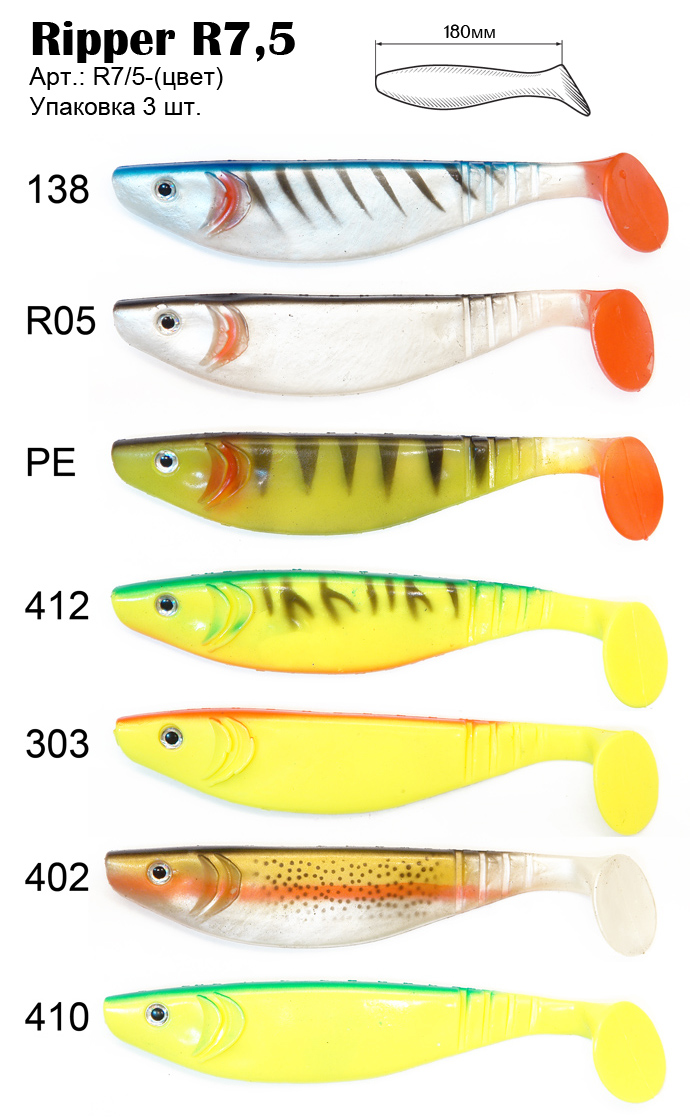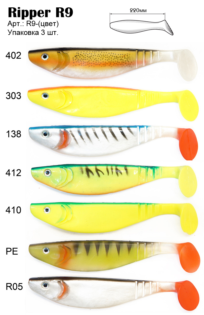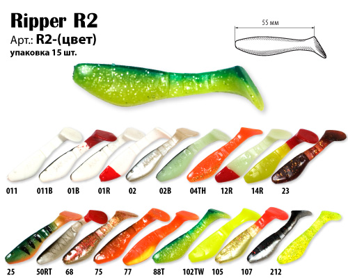 Крупные виброхвосты для рыбалки на судака и щуку, а 50 мм рипперы с успехом ловят окуня.