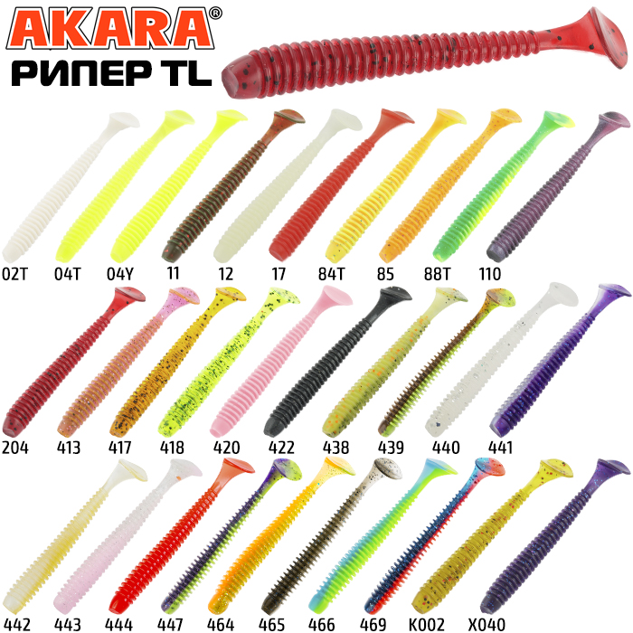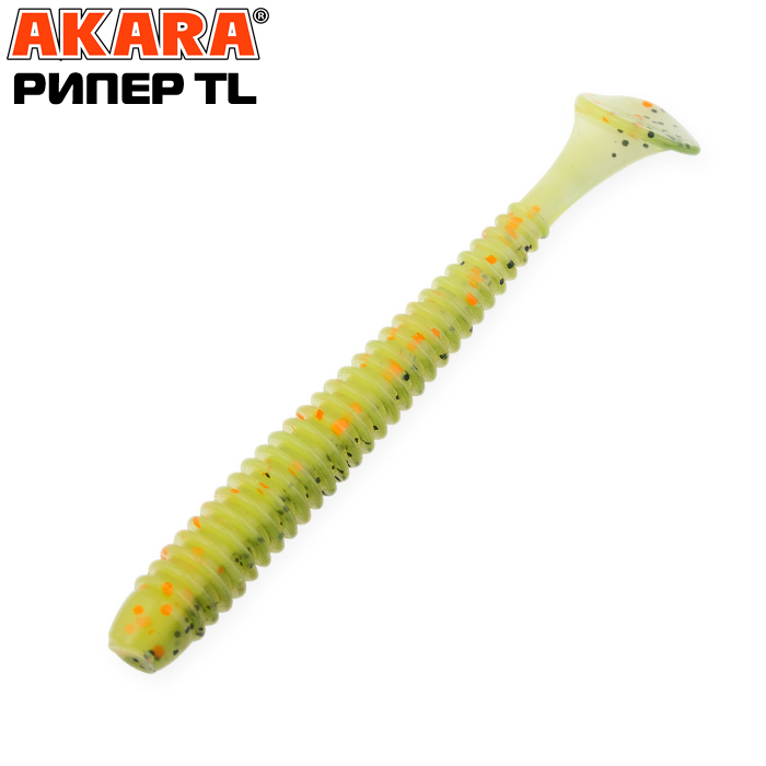 Akara Tail TL - линейка популярных виброхвостов с ребристым телом и очень подвижным хвостом. Благодаря своей форме, приманка моментально заводится и прекрасно играет даже при очень медленной проводке, а ребра на теле производят в воде поток низкочастотных колебаний, которые привлекают рыбу. С Akara Tail можно использовать весь набор приемов проводки, и равномерную проводку на разных скоростях, и разные комбинированные проводки с подбросами, твичингом и паузами. Широкий размерный ряд делает эту приманку поистине универсальной: крупные виброхвосты отлично работают по судаку и щуке, а пятисантиметровые рипперы с успехом ловят окуня. Как правило, оснащается обычным джигом или чебурашкой с офсетом или одинарным крючком. Выпускается в размерах 50, 75, и 95 мм.