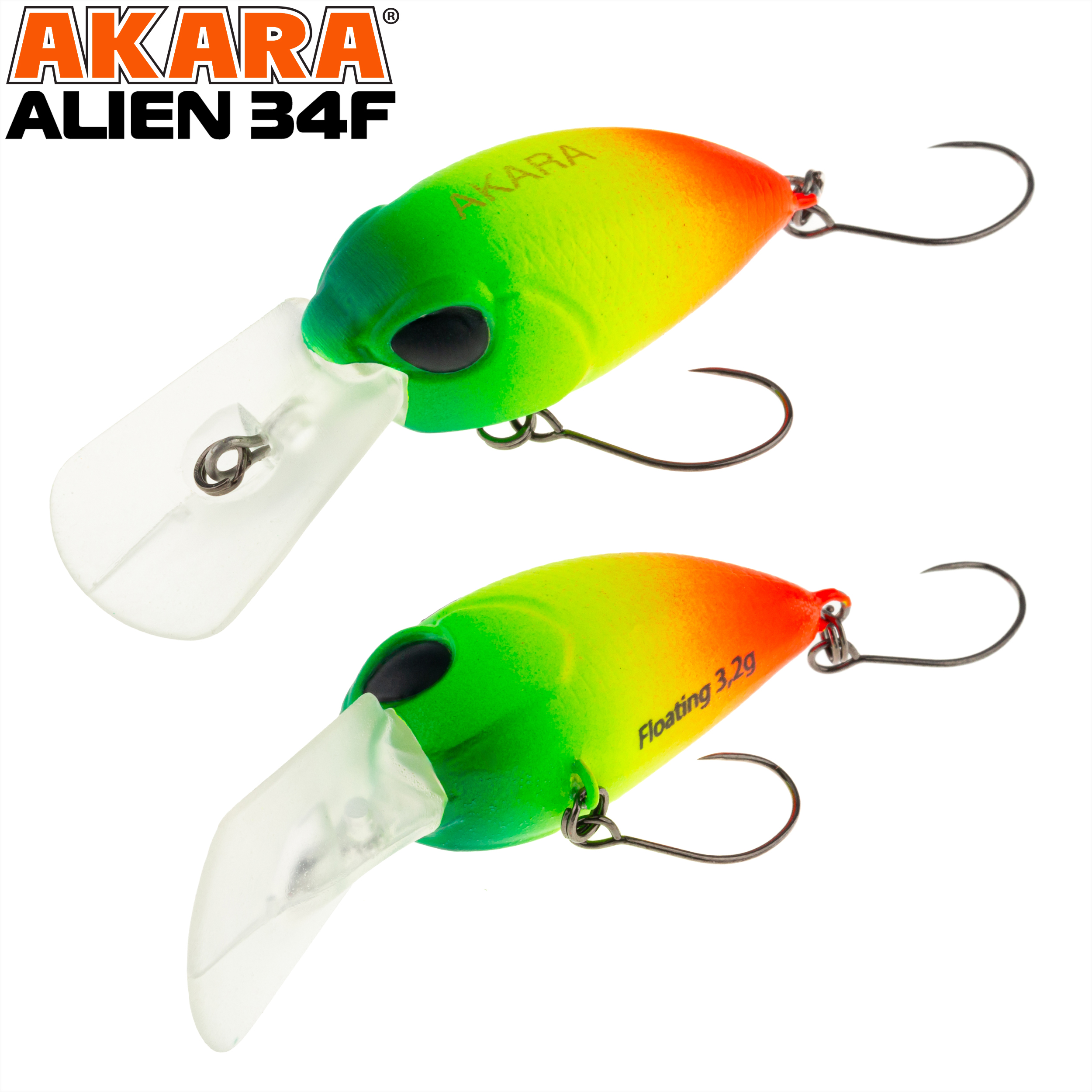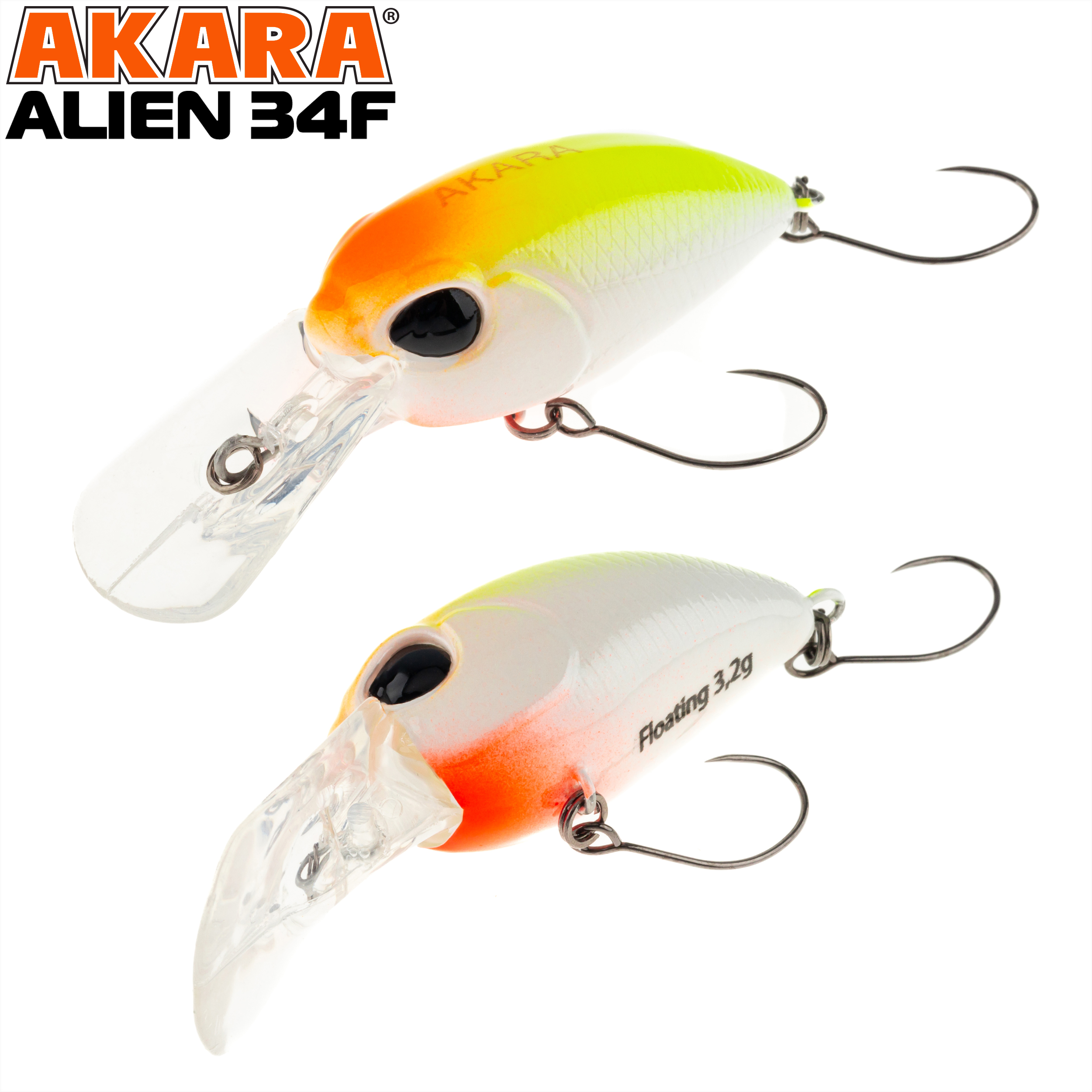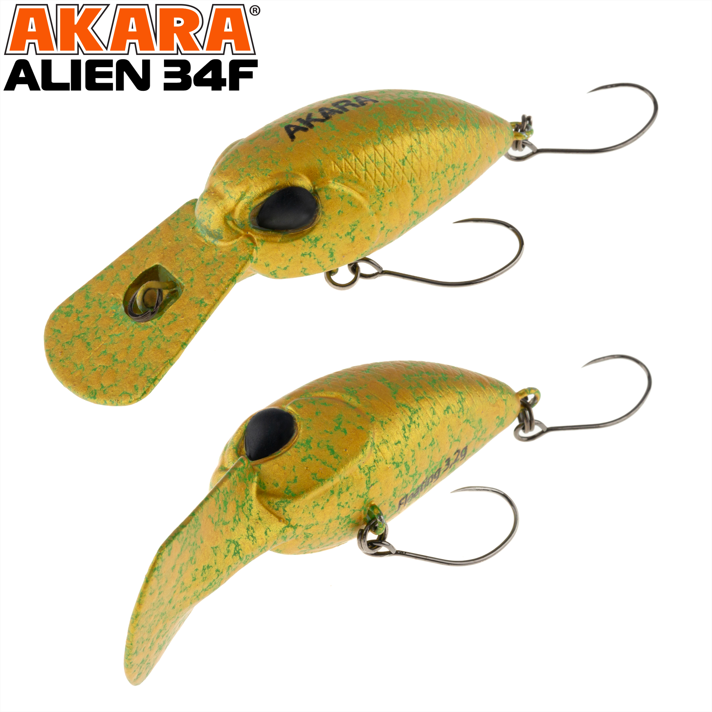 Akara Alien 34F - это плавающий крэнк-воблер, разработанный для ловли голавля и форели. Благодаря заглублению до 1,5 метров, он эффективен как на мелководье, так и вблизи донных участков. Шумовая камера внутри воблера создаёт дополнительные вибрации и звуки, привлекая хищников и повышая вероятность поклёвки. Рекомендуется использовать медленную проводку, чтобы воблер максимально напоминал хищникам раненую рыбку.