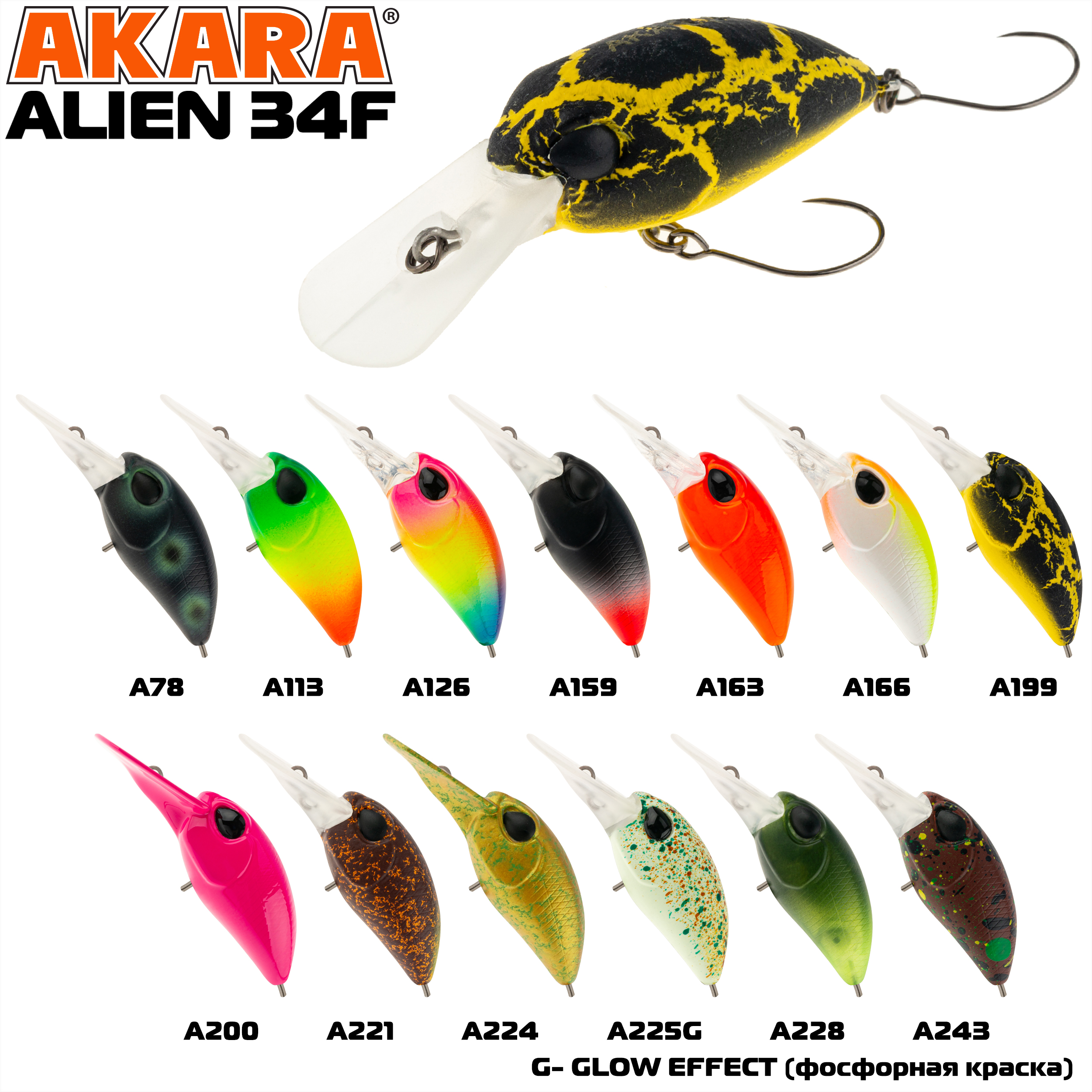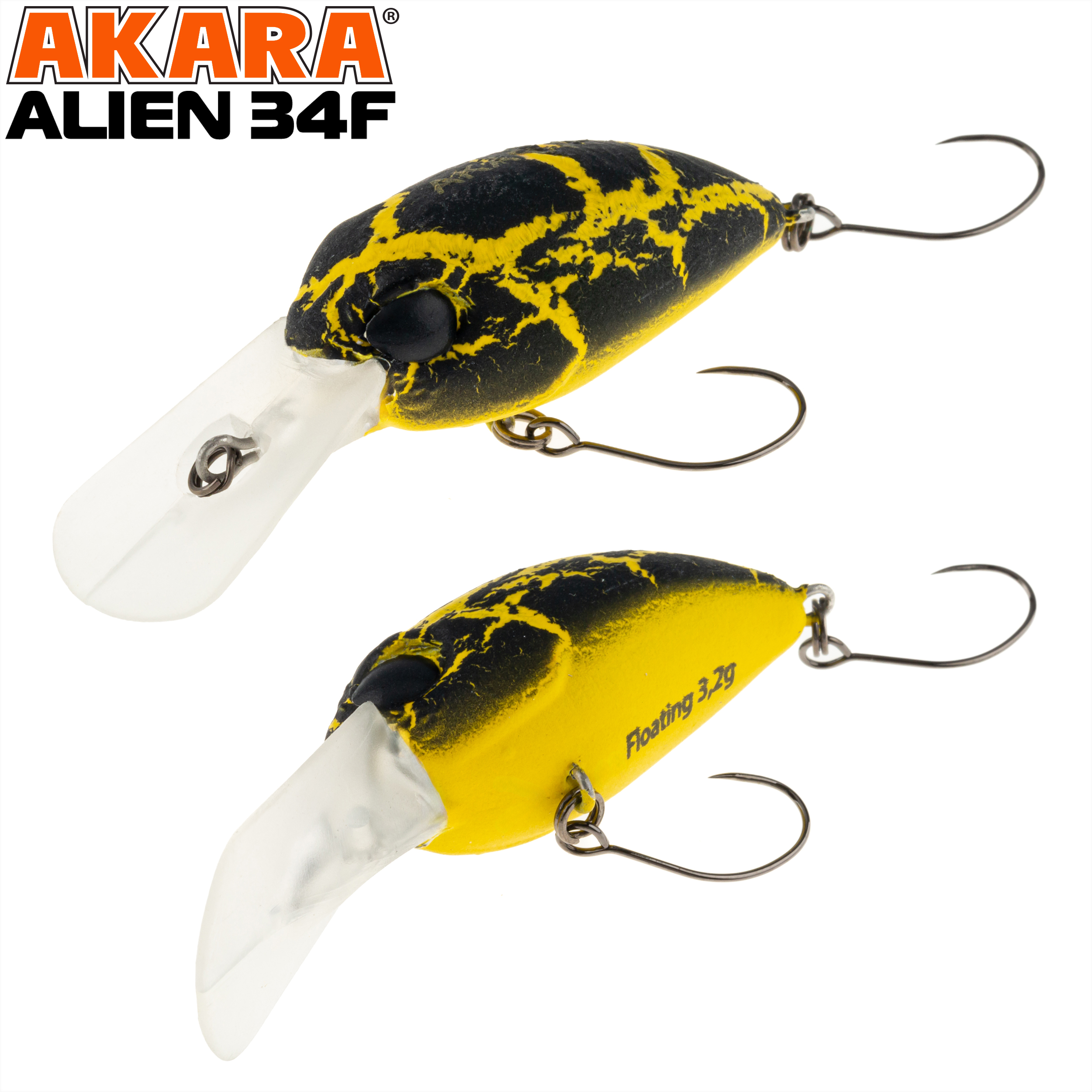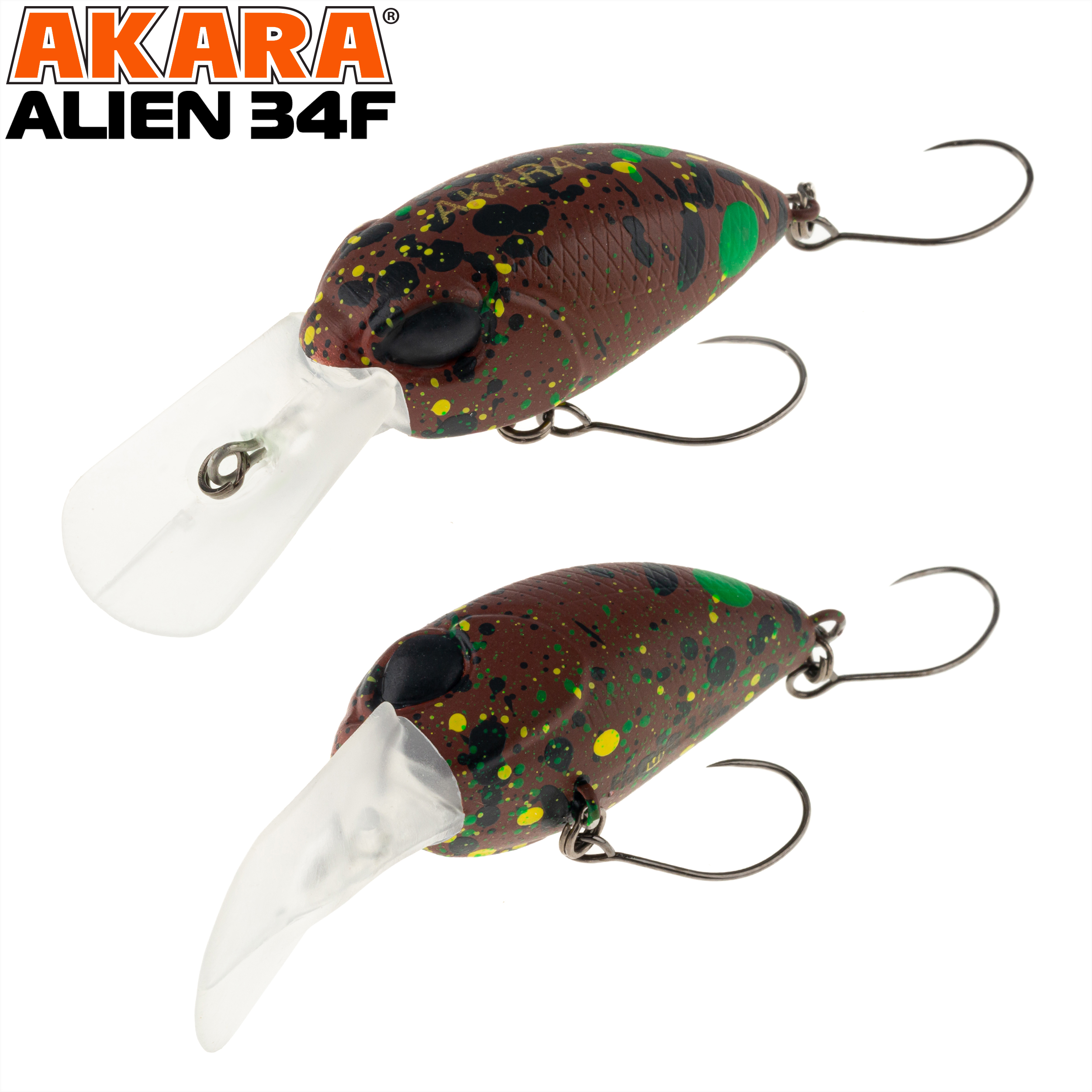 Akara Alien 34F - это плавающий крэнк-воблер, разработанный для ловли голавля и форели. Благодаря заглублению до 1,5 метров, он эффективен как на мелководье, так и вблизи донных участков. Шумовая камера внутри воблера создаёт дополнительные вибрации и звуки, привлекая хищников и повышая вероятность поклёвки. Рекомендуется использовать медленную проводку, чтобы воблер максимально напоминал хищникам раненую рыбку.
