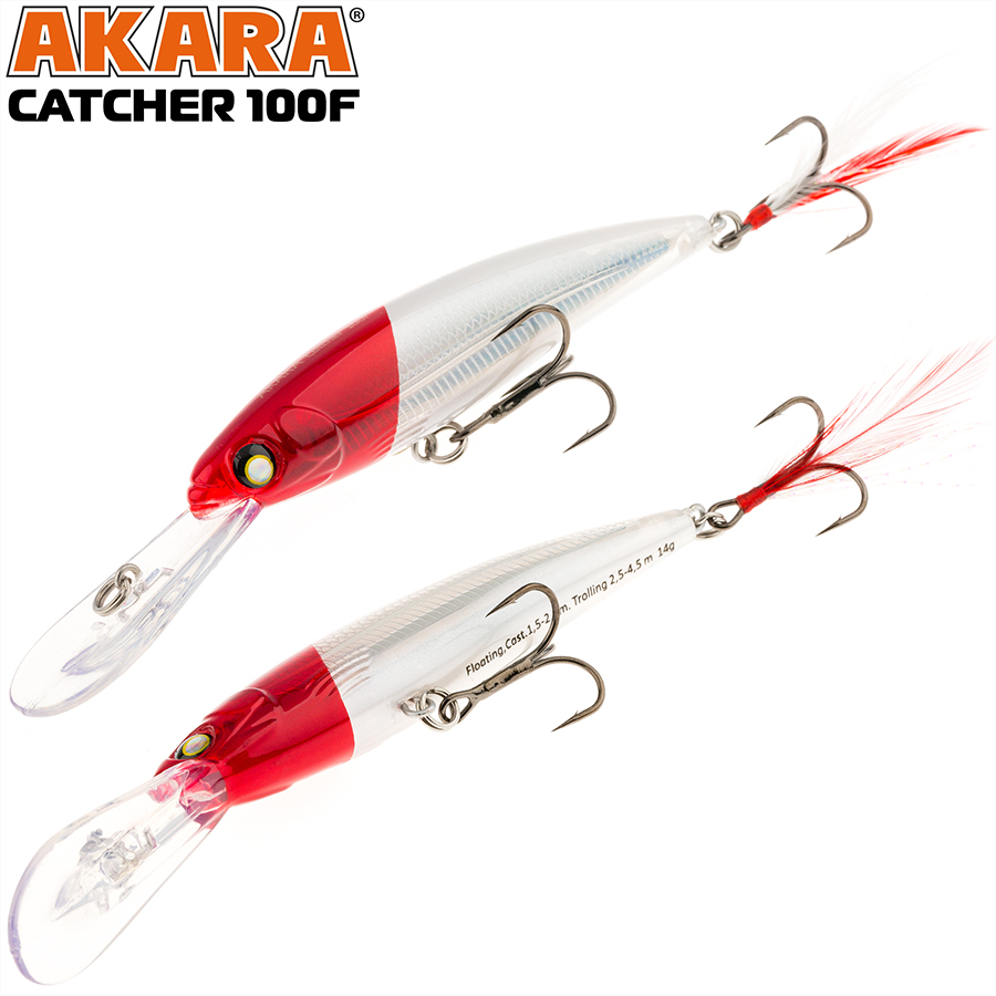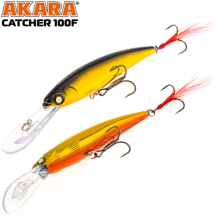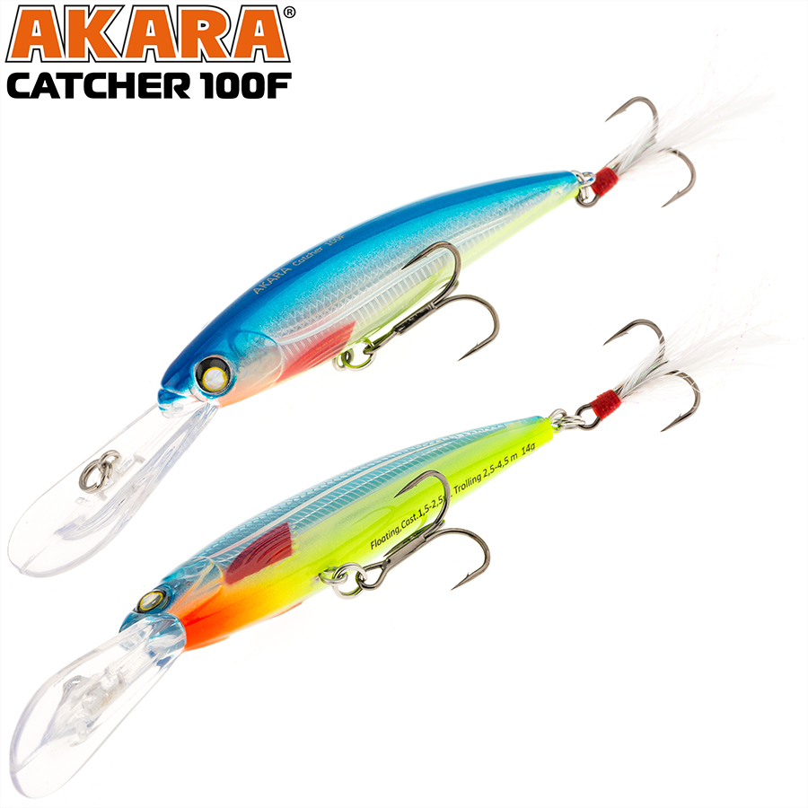 Catcher 100F - воблер отлично зарекомендовавший себя при ловле судака и крупного окуня. Благодаря 3D эффекту, воблер очень реалистично выглядит в воде. Обладает стабильной, высокочастотной, мелкой игрой, которая очень нравится отряду окуневых. Наличие акустических камер создает дополнительный шумовой эффект привлекающий хищников. Плавающий. Заглубление при кастинге 1,5 до 2,5 м., при троллинге 2,5 до 4,5 м.