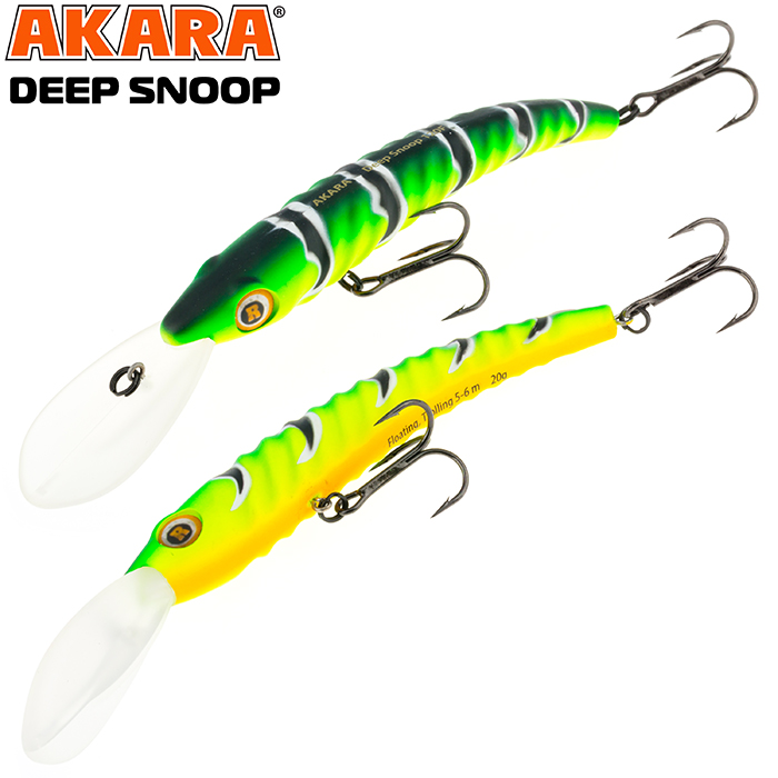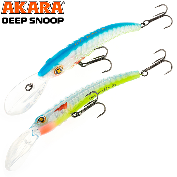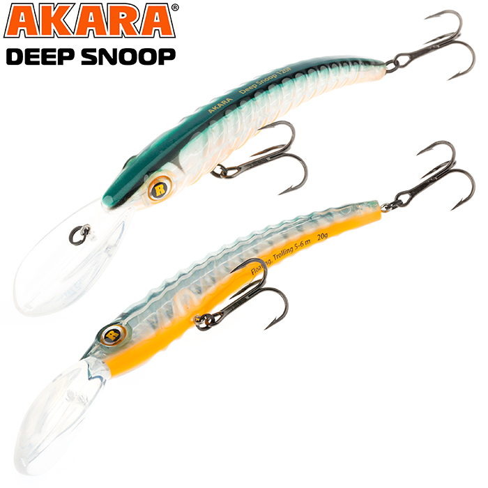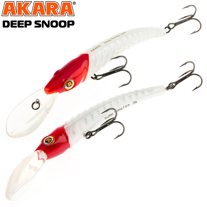 Deep Snoop 120F - глубоководный троллинговый воблер, разработан для ловли донной рыбы на глубинах до 6 метров. Этот оригинальный воблер обладает высокочастотной игрой, а выгнутая форма тела с ребрами по бокам, создает дополнительные колебания, которые привлекает рыбу с больших расстояний. Рассчитан на ловлю судака и щуки, сома. Заглубление при троллинге от 5,0 до 6,0 м.