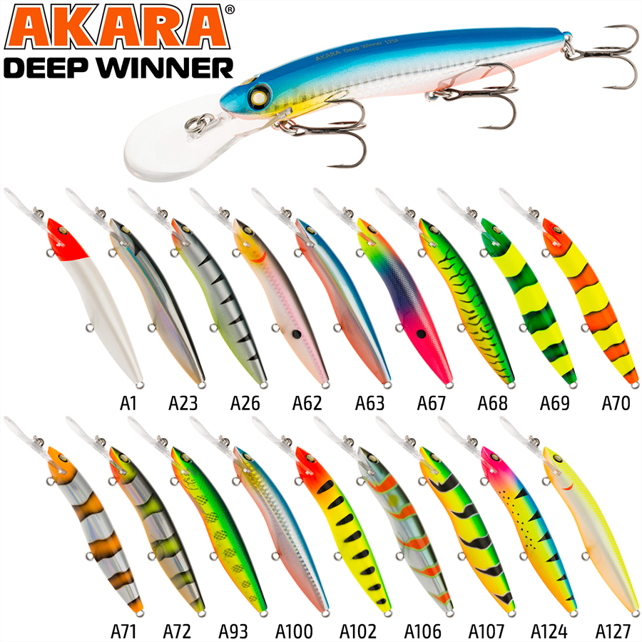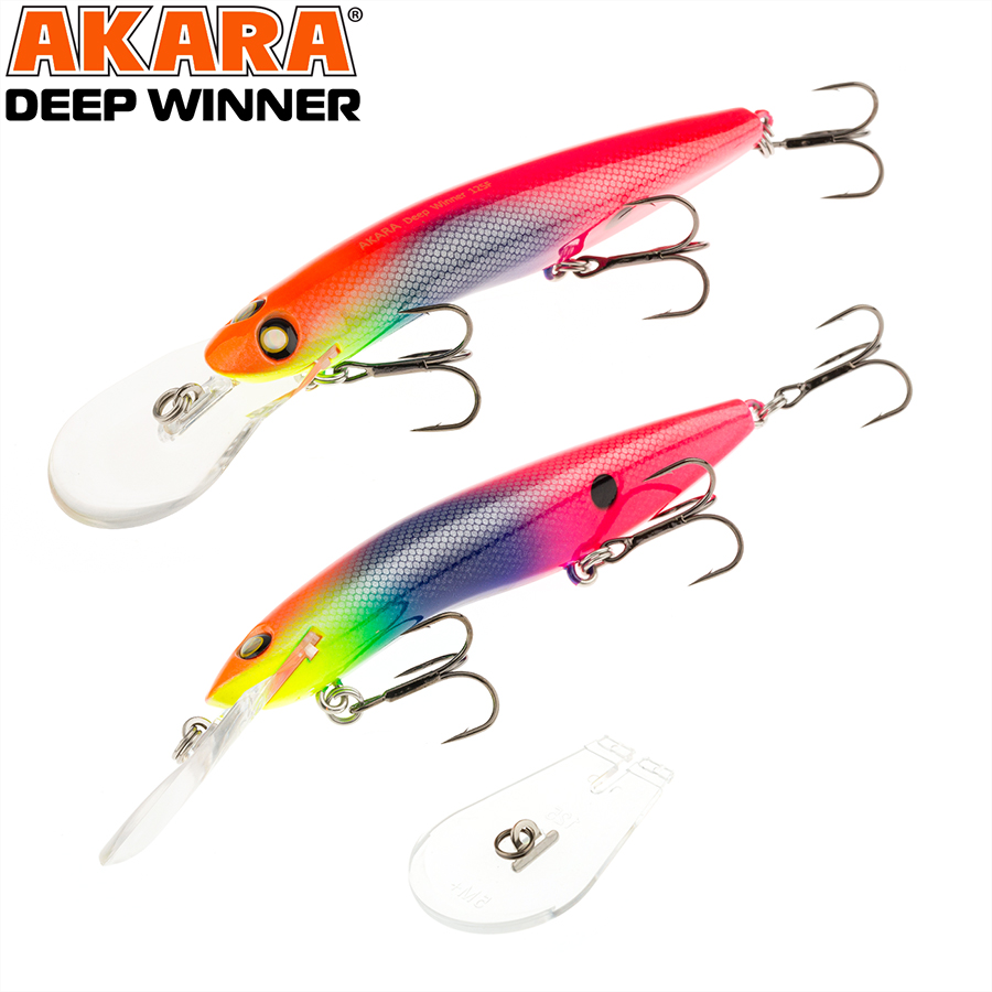 Deep Winner 125F - крупная троллинговая приманка для ловли на глубинах до 8 метров.Имеет игру средней амплитуды. Подходит для ловли судака, сома, трофейной щуки. Комплектуется дополнительной лопаткой для разных заглублений. Плавающий. Акустический. Заглубление при троллинге от 5,0 до 8,0 м.