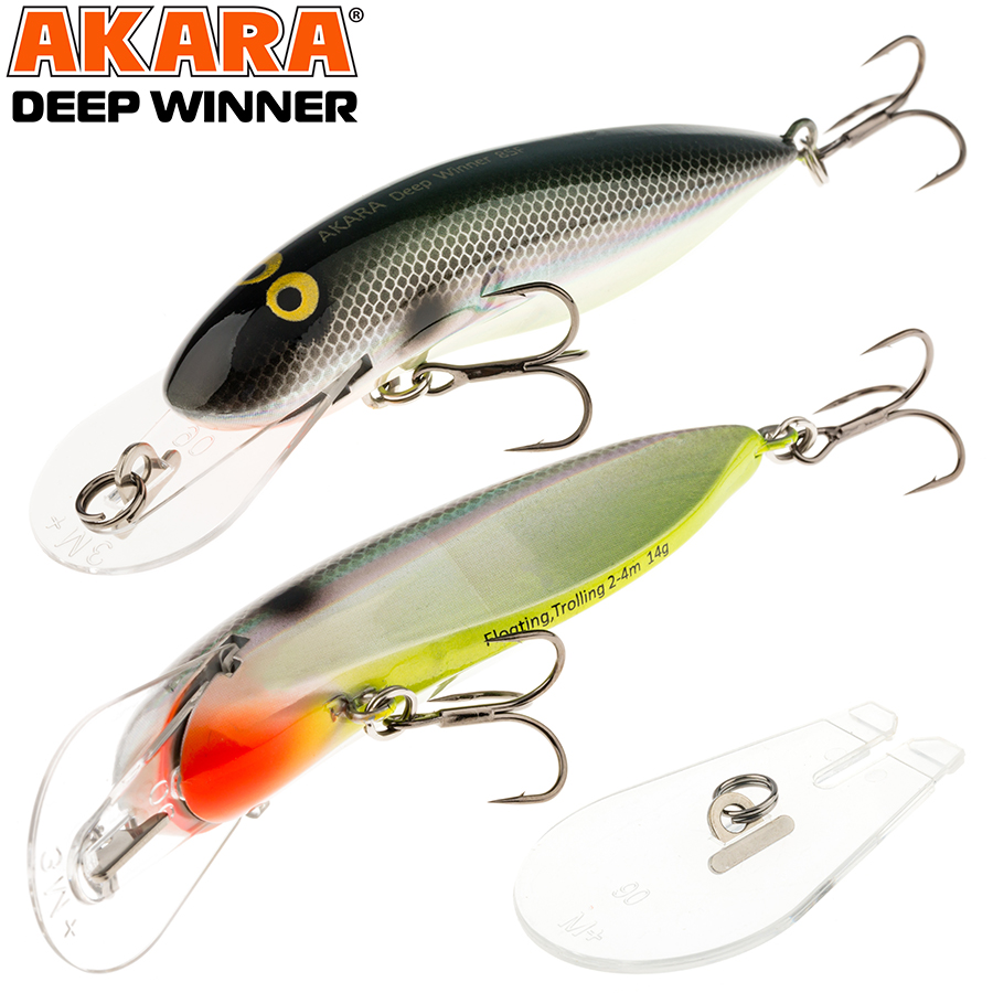 Deep Winner 85F - троллинговая приманка для ловли на глубинах до 4 метров.Имеет игру средней амплитуды. Подходит для ловли судака, сома, трофейной щуки. Комплектуется дополнительной лопаткой для разных заглублений. Плавающий. Акустический. Заглубление при троллинге от 2,0 до 4,0 м.