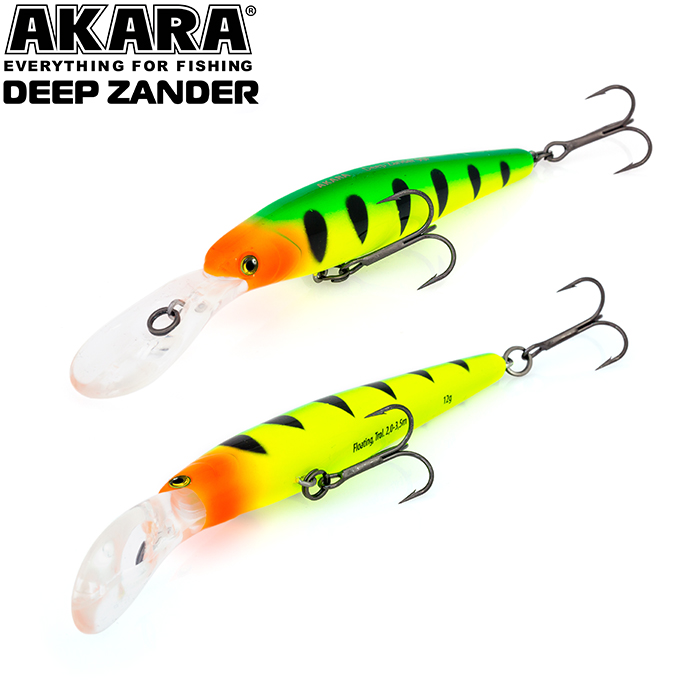 Deep Zander 90F – воблер класса минноу для ловли судака. Характеризуется высокочастотной игрой со средними колебаниями. Стабильно удерживает свой рабочий горизонт при троллинге. Встроенная в тело приманки шумовая камера создает звук, который привлекает рыбу с больших расстояний. Плавающий. Заглубление при троллинге от 2,0 до 3,5 м.