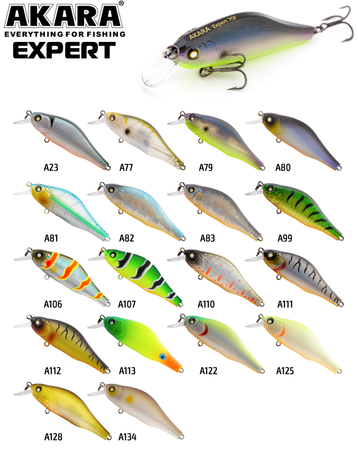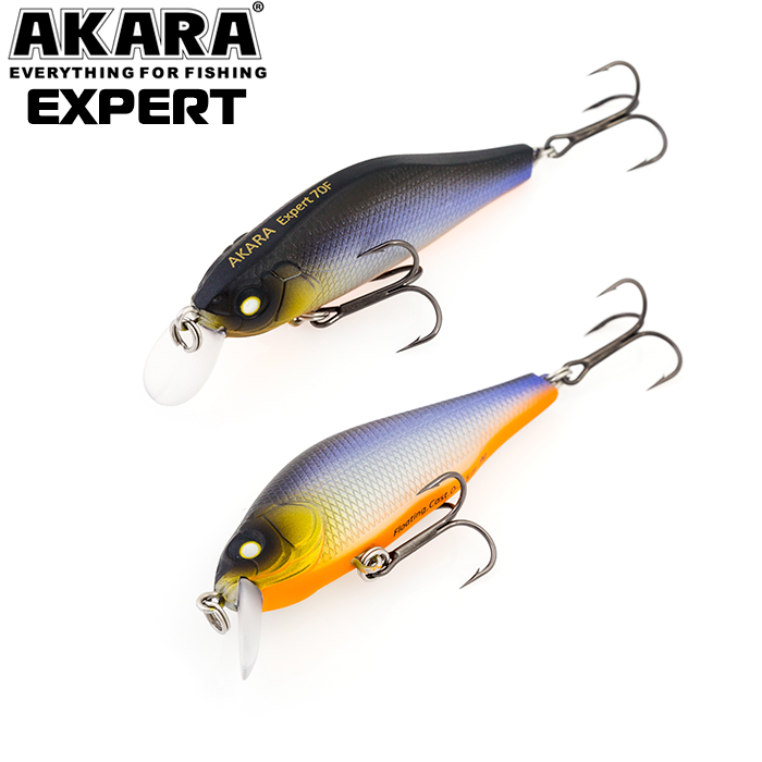 Akara Expert 70F - воблер класса шэд (Shad). Имеет довольно высокое тело, сплюснутое с боков и небольшую лопасть. Обладает активной собственной игрой на равномерной проводке и отлично подходит для рывковой (твичинговой) проводки. Лучше всего проявляет свои уловистые свойства на мелководных реках и озерах, неглубоких участках водохранилищ и крупных рек. Основные трофеи это щука и окунь, но и другие хищные и полухищные рыбы не смогут устоять пред соблазнительной игрой приманки. Воблер Akara Expert 70F оснащен магнитной системой дальнего заброса (Magnetic Cast Sistem MCS). Крючки из высокоуглеродистой стали, тип плавучести – плавающий (Floating). Заглубление от 0 до 1,5м.