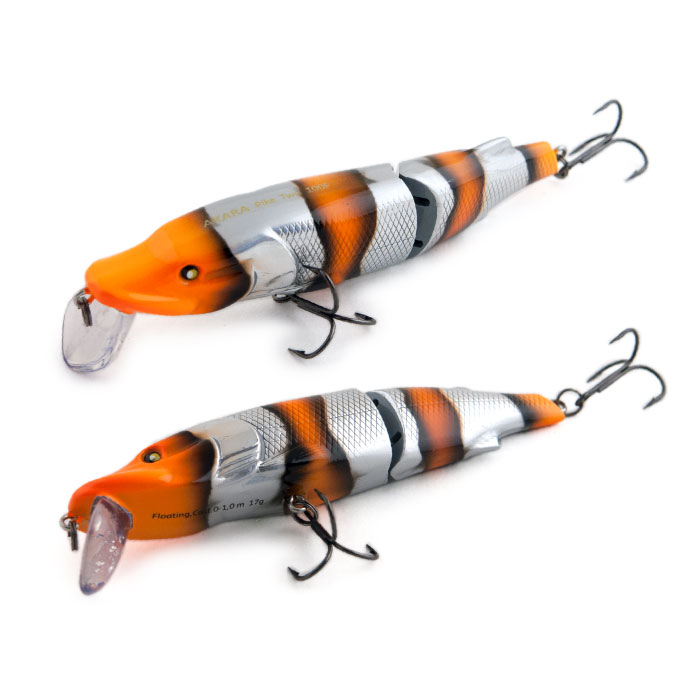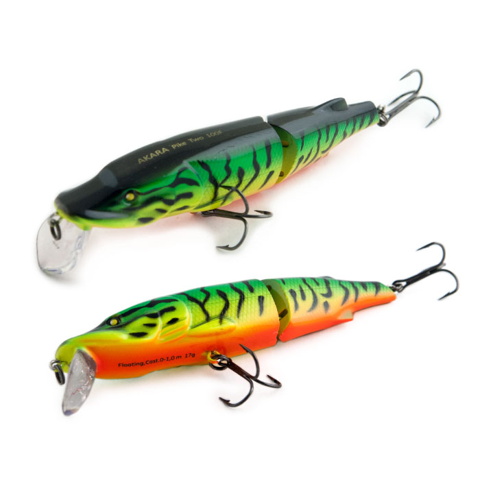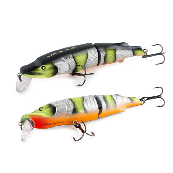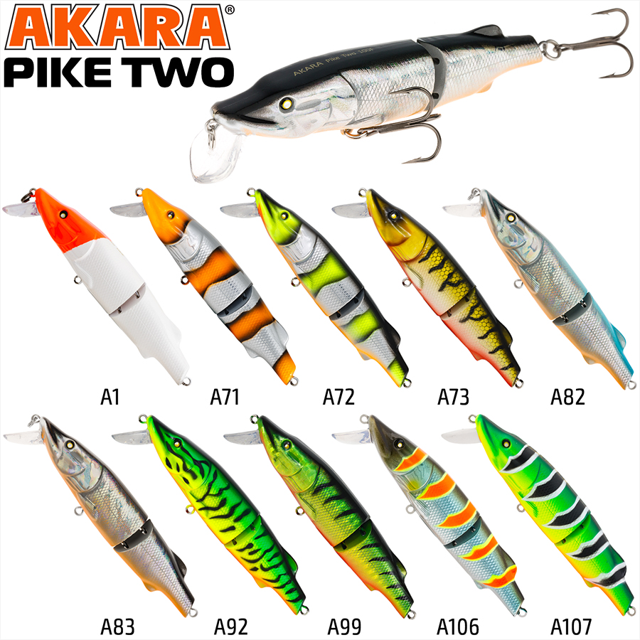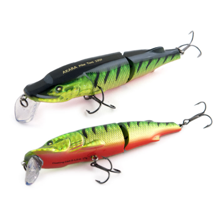 Pike Two 100F - оригинальная, двухсоставная, приманка в форме щуренка. Воблер заводится с первых сантиметров проводки и имитирует своей игрой раненую или больную рыбку, чем привлекает хищника. Хорошо ловит при простой равномерной проводке, или при плавных подтяжках с небольшими рывками перед паузой. Плавающий. Акустический. Заглубление при кастинге 0 до 1,0 м.